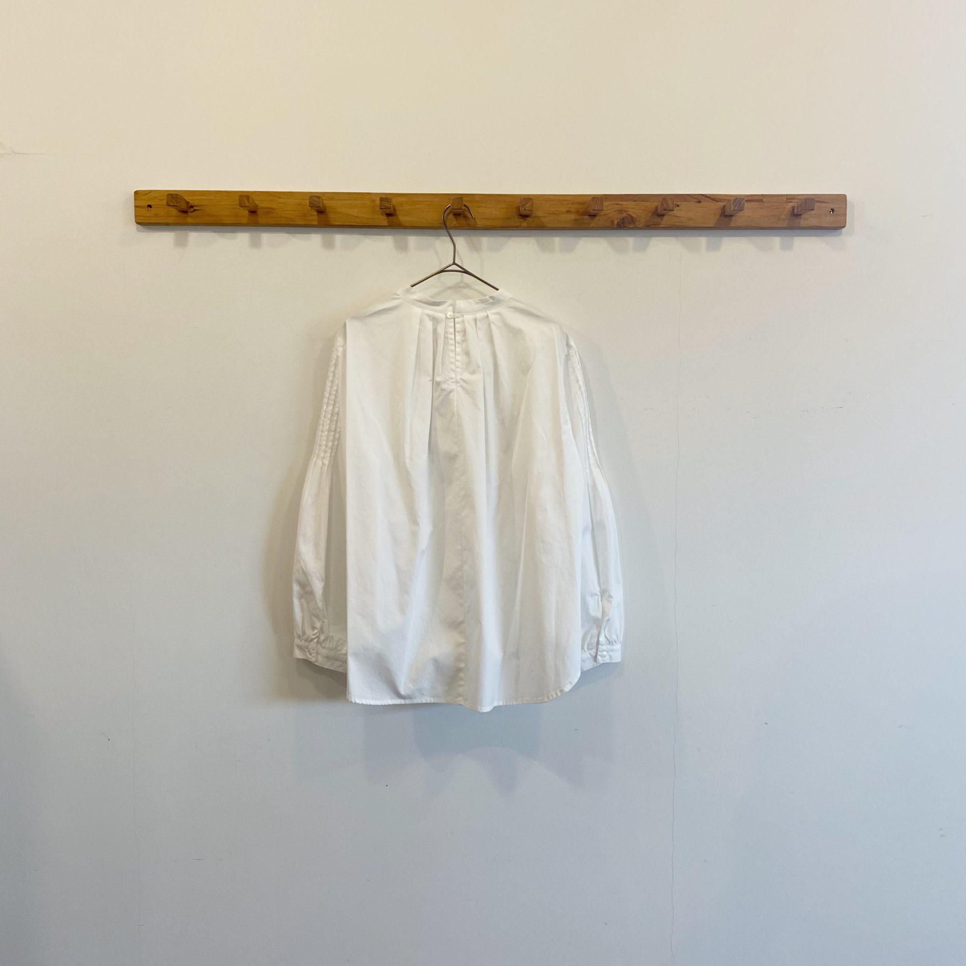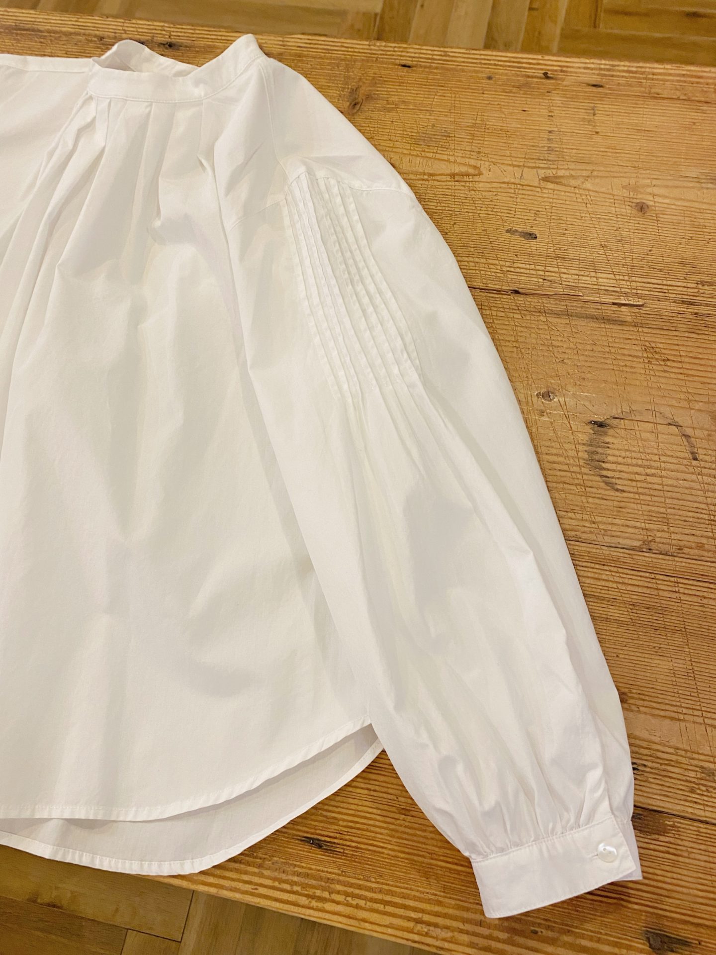 Bico un cinq ブロード スタンドネック プルオーバー 非常に細い100番手の糸を2本撚り合わせ織られたブロード生地で仕立てたスタンドネックプルオーバーです。 肌触りが滑らかでしなやかさを持ち、品のある光沢、適度なハリがあります。襟元や袖に施されたされたタックが女性らしさを一層惹きたてます。シンプルなので甘くなり過ぎず、どんなアイテムにも合わせられオンオフ共に着回しの効く、汎用性のある1枚です♪ 綿 100% 12,100yen 2024-12-13 by chabbit un cinq < un cinq ina >