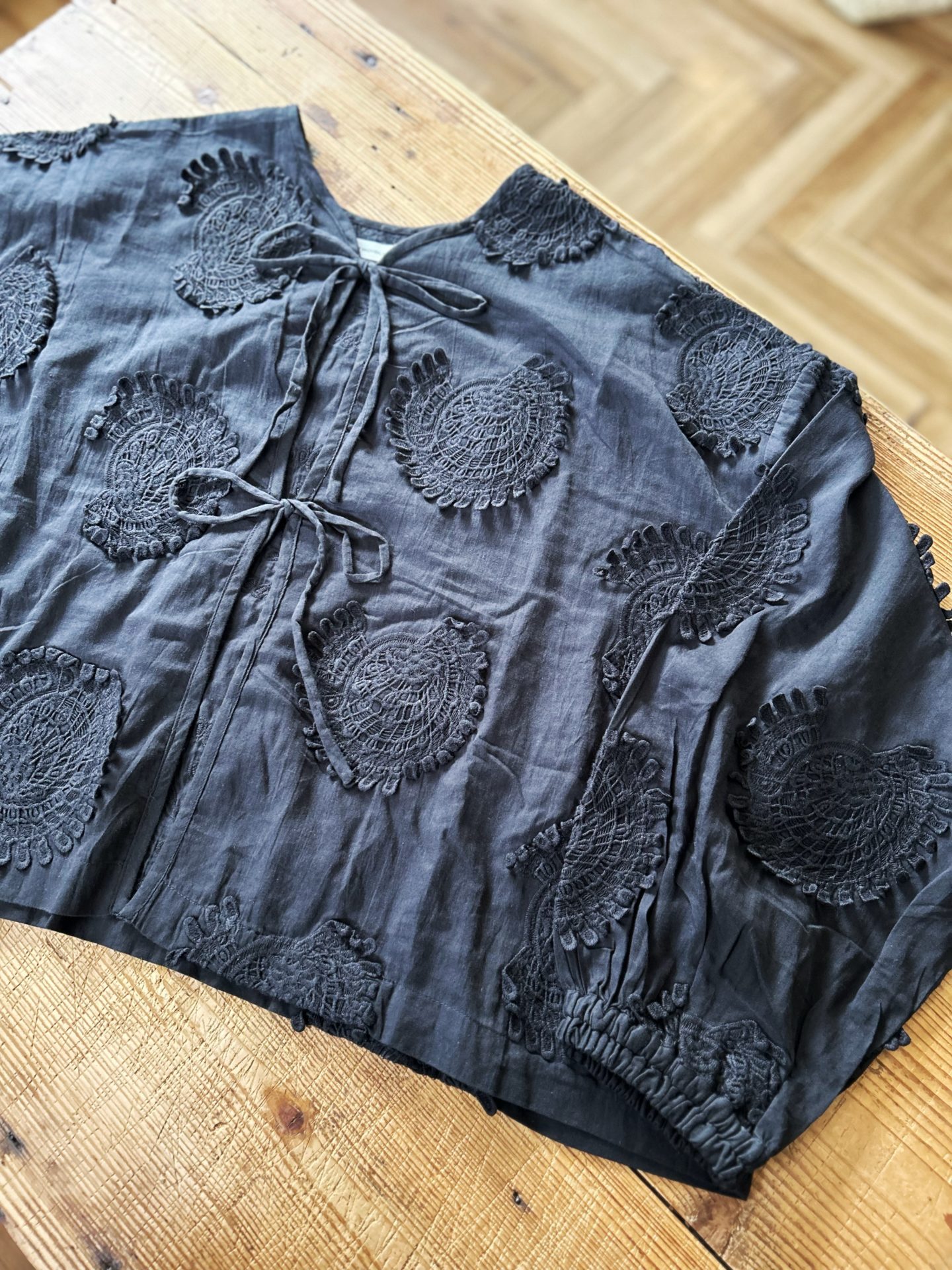 Bico ESTROISLOSE モチーフ刺繍コットン羽織り 大胆な大柄の3D刺繍が特徴のアイテムです♪ 少し光沢感のあるサテン素材で上品な1枚ですよ! 綿 100% 27,280yen 2024-12-20 by chabbit ESTROISLOSE < ESTROISLOSE UNIVERSAL TISSU >