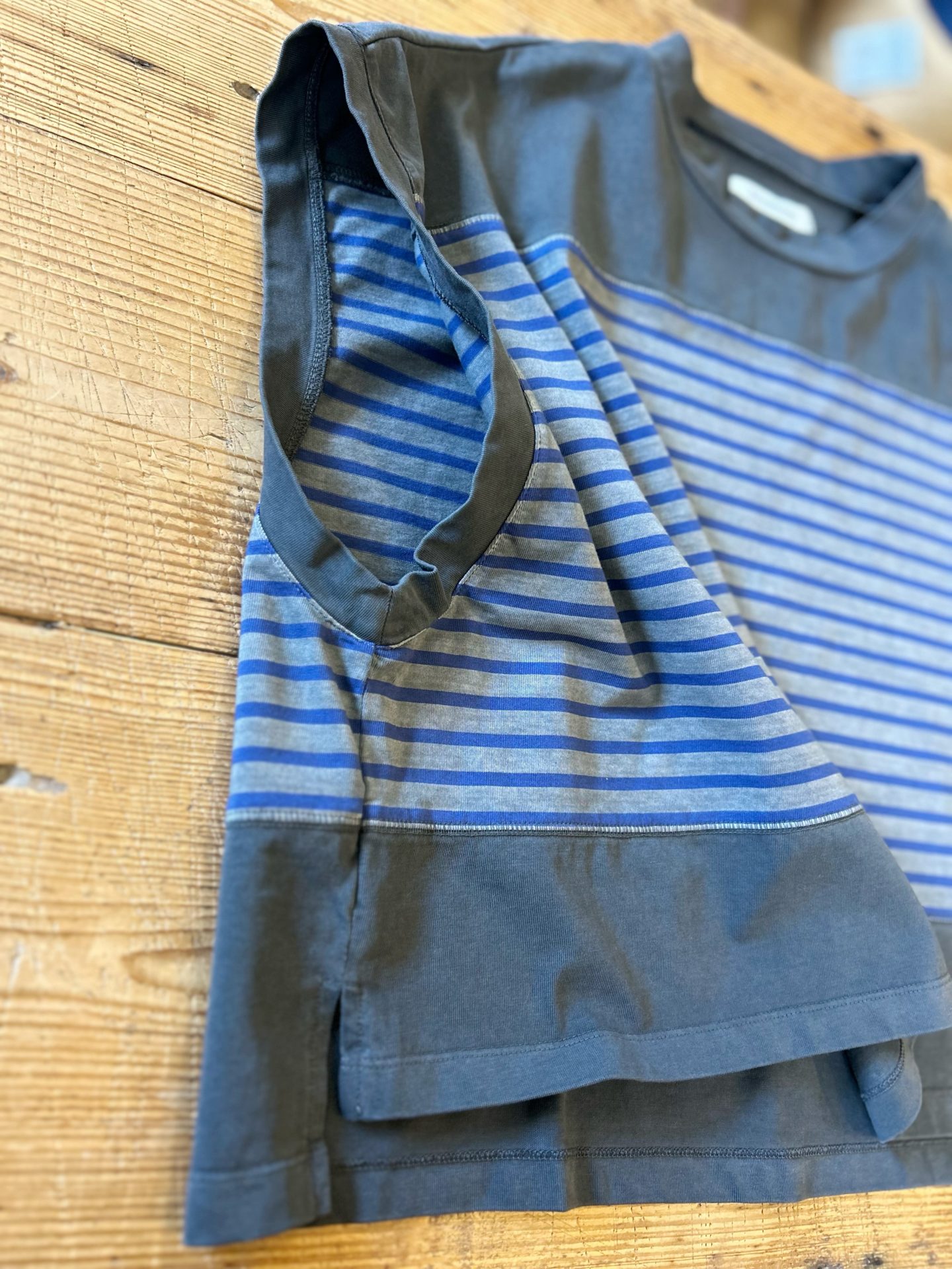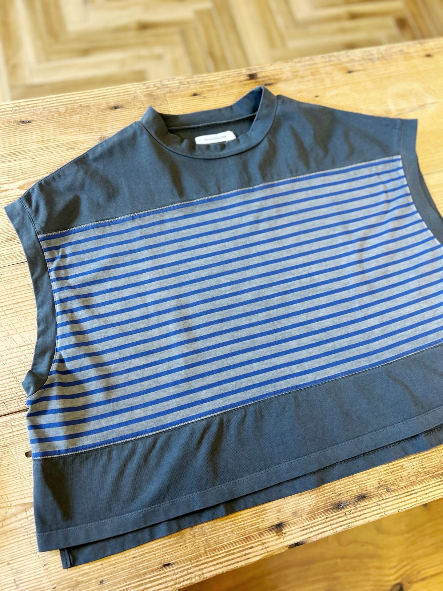 Bico ESTROISLOSE ハイゲージ ボーダーベスト ハイゲージで目面がきれいなボーダーに独特な色ムラやフェード感を表現したカットソープルオーバーが入荷しました♪ 綿 100% 14,080yen ゆったりした身幅にドロップ気味の肩のライン、着用するとフレンチスリーブぐらいになります☆ 製品染めにより、少し古着っぽい雰囲気が出ています♪ 2025-01-17 by chabbit ESTROISLOSE < D.M.G grin >
