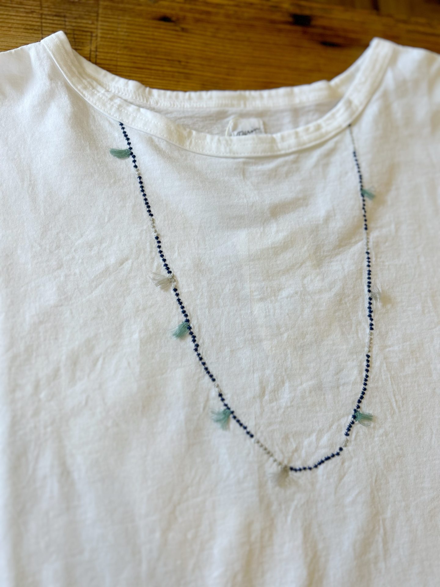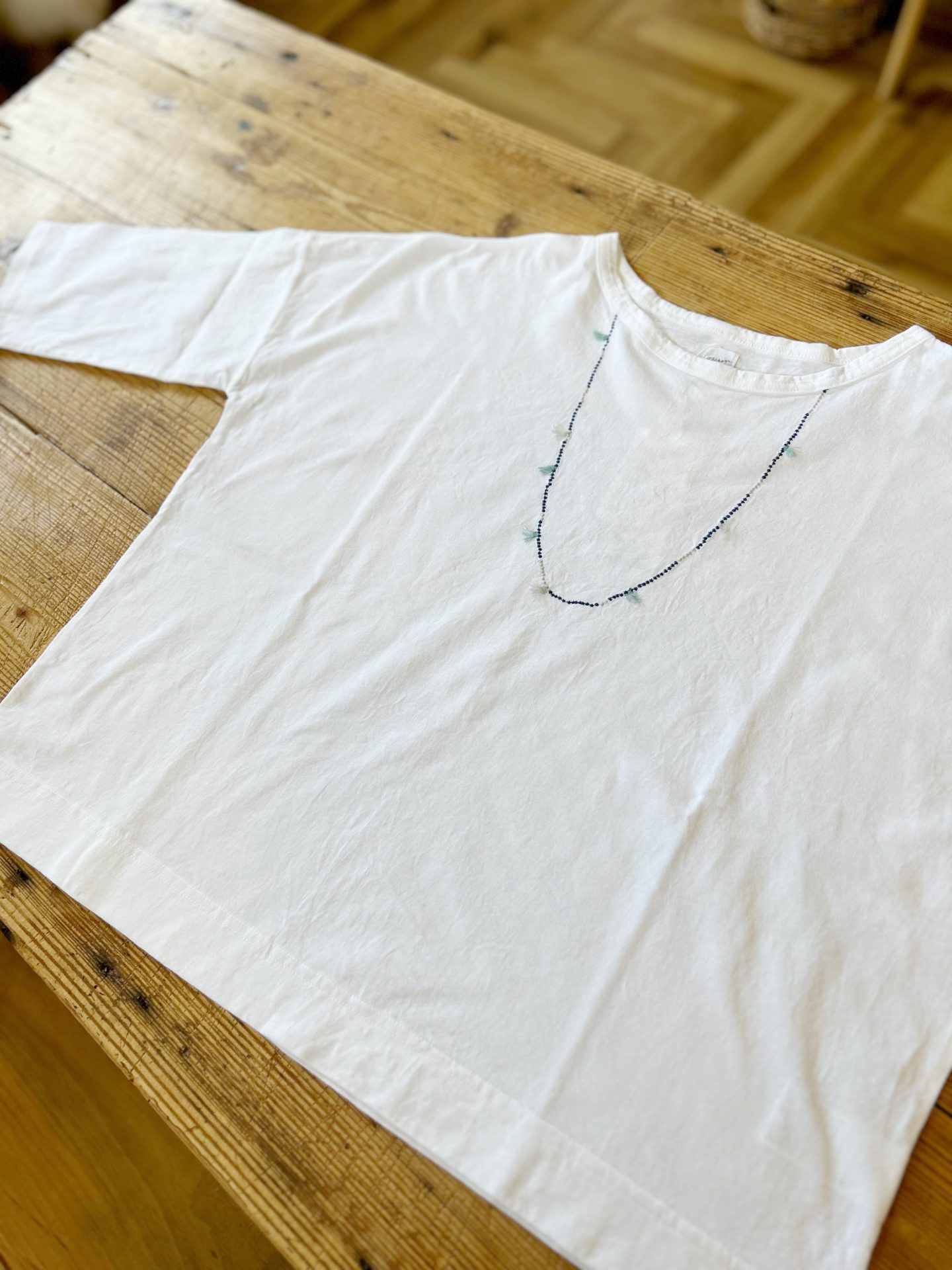 Bico grin エーゲ海ネックレス刺繍Tシャツ 薄手でハリのある定番の生地にネックレスの刺繍を施した人気のシリーズです♪ 綿 100% 9,350yen 2025-01-17 by chabbit grin < ESTROISLOSE NATURAL LAUNDRY >