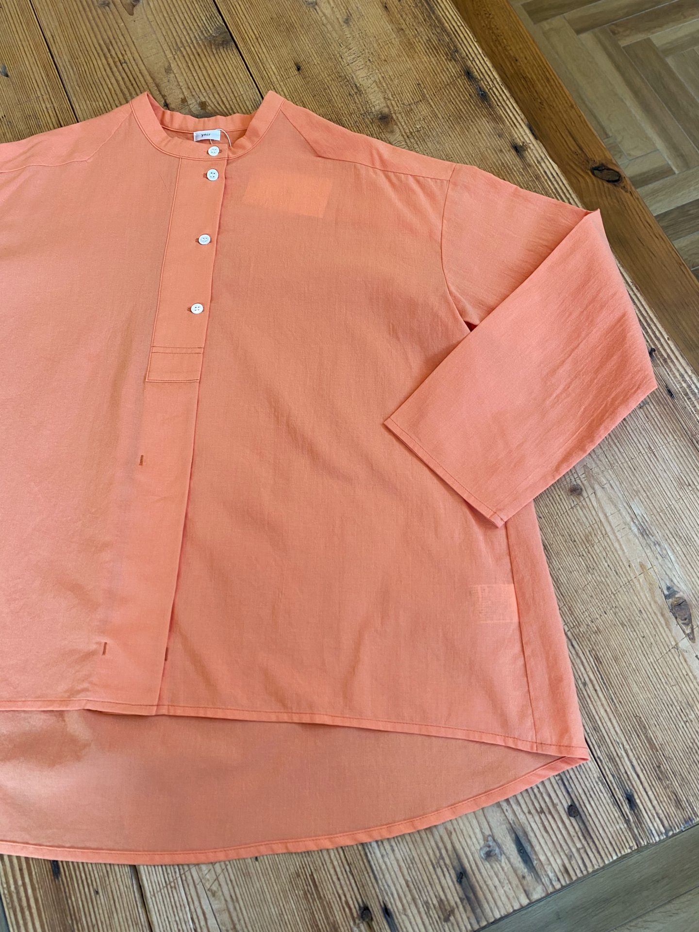 柔らかく加工されたカラーローン素材、プルオーバーにも見える前開きのシャツが入荷しました♪
