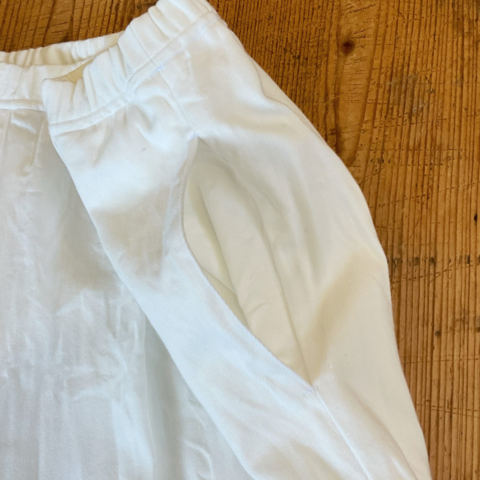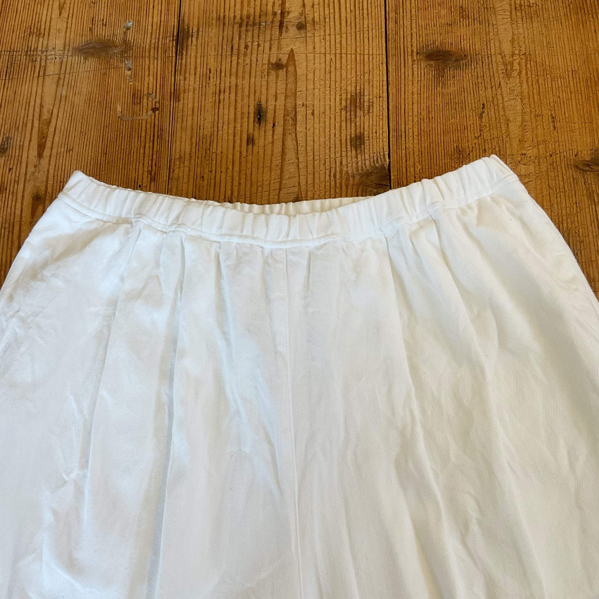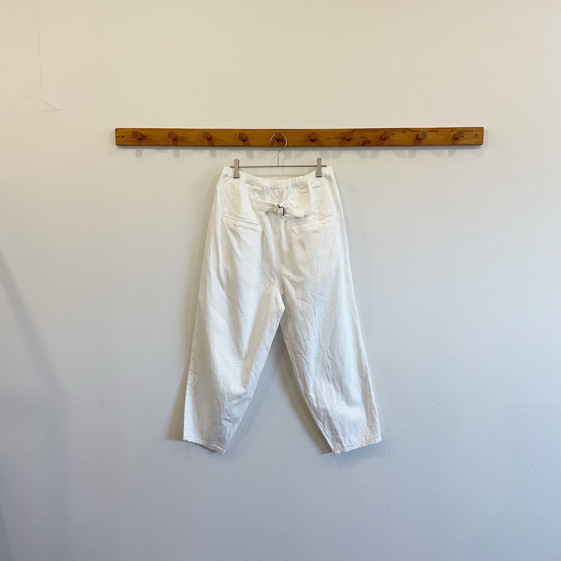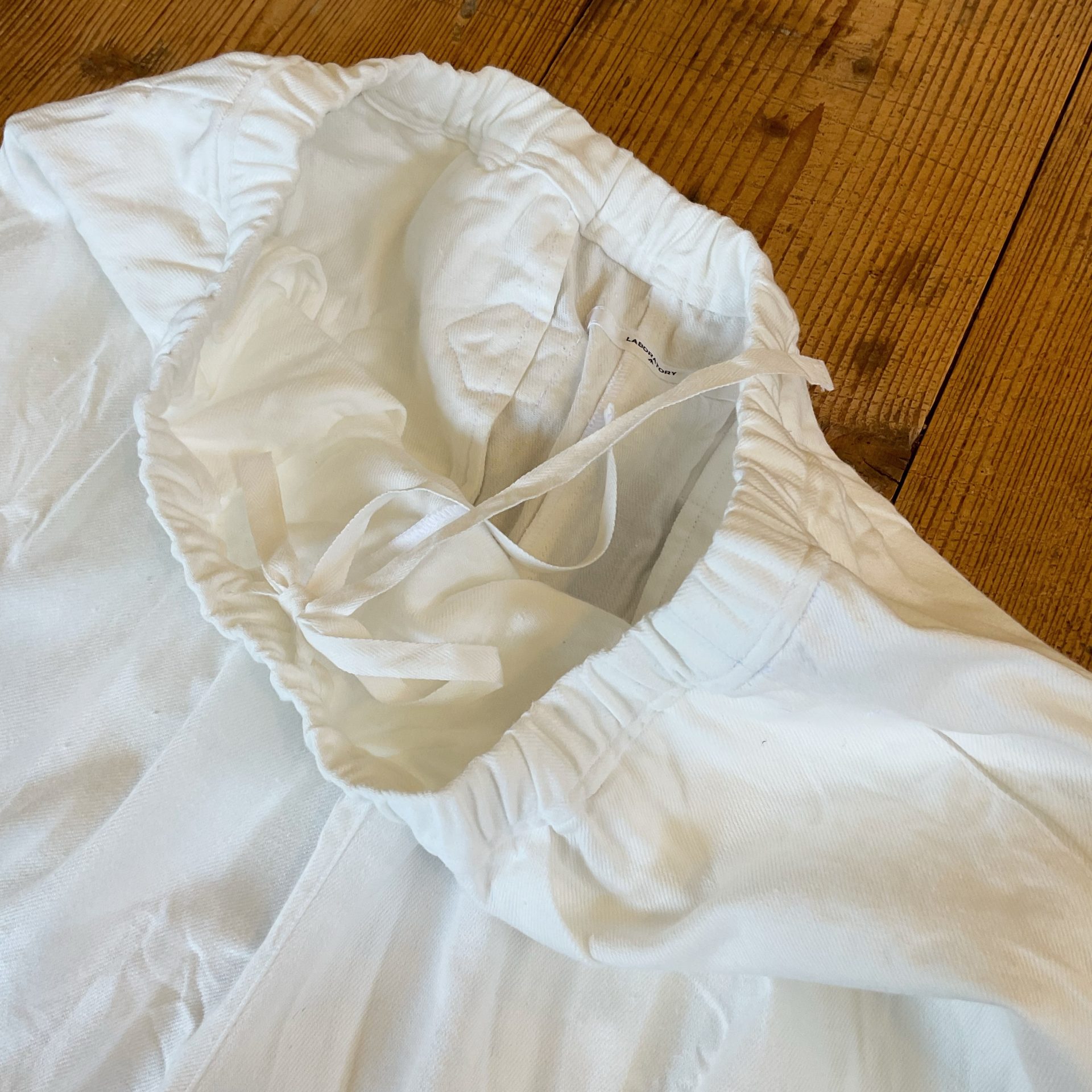 Bico LABORATORY アノニマスデニムトラヴァイユパンツ フランスのワークパンツをリプロダクションしたホワイトデニムのパンツです。 コットン88% リネン12% 18150yen ウエストはゴムと紐の仕様です。 前面はタックが入っているのですっきりです。 両サイドポケット付きです。 2025-01-23 by chabbit Laboratory < (g) Gauze >