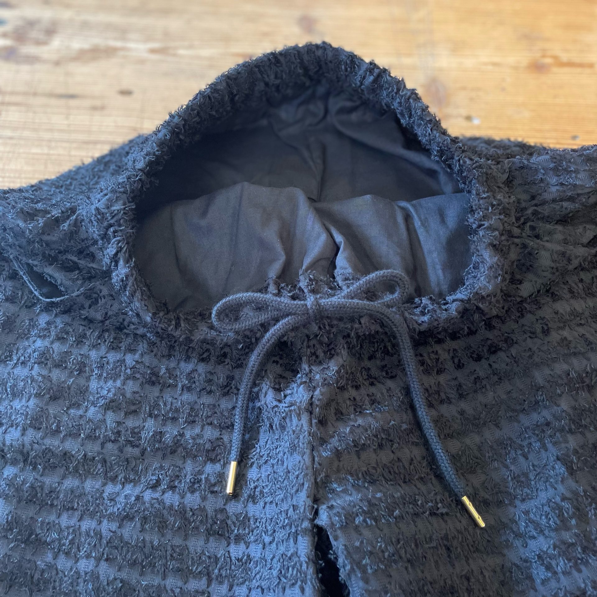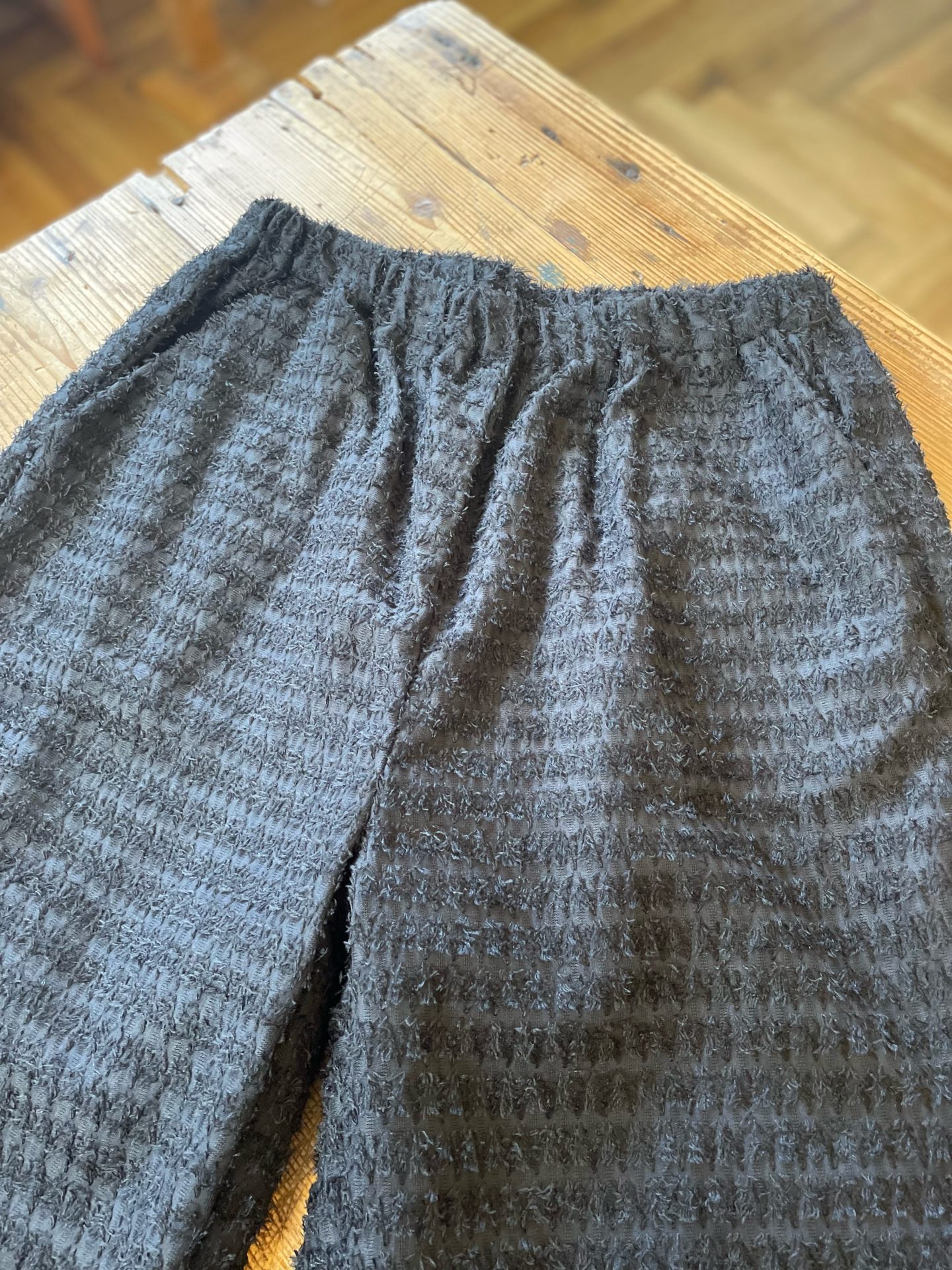 強撚のクレープをベースにカットジャガードでシャギーのような毛足を出した素材で、