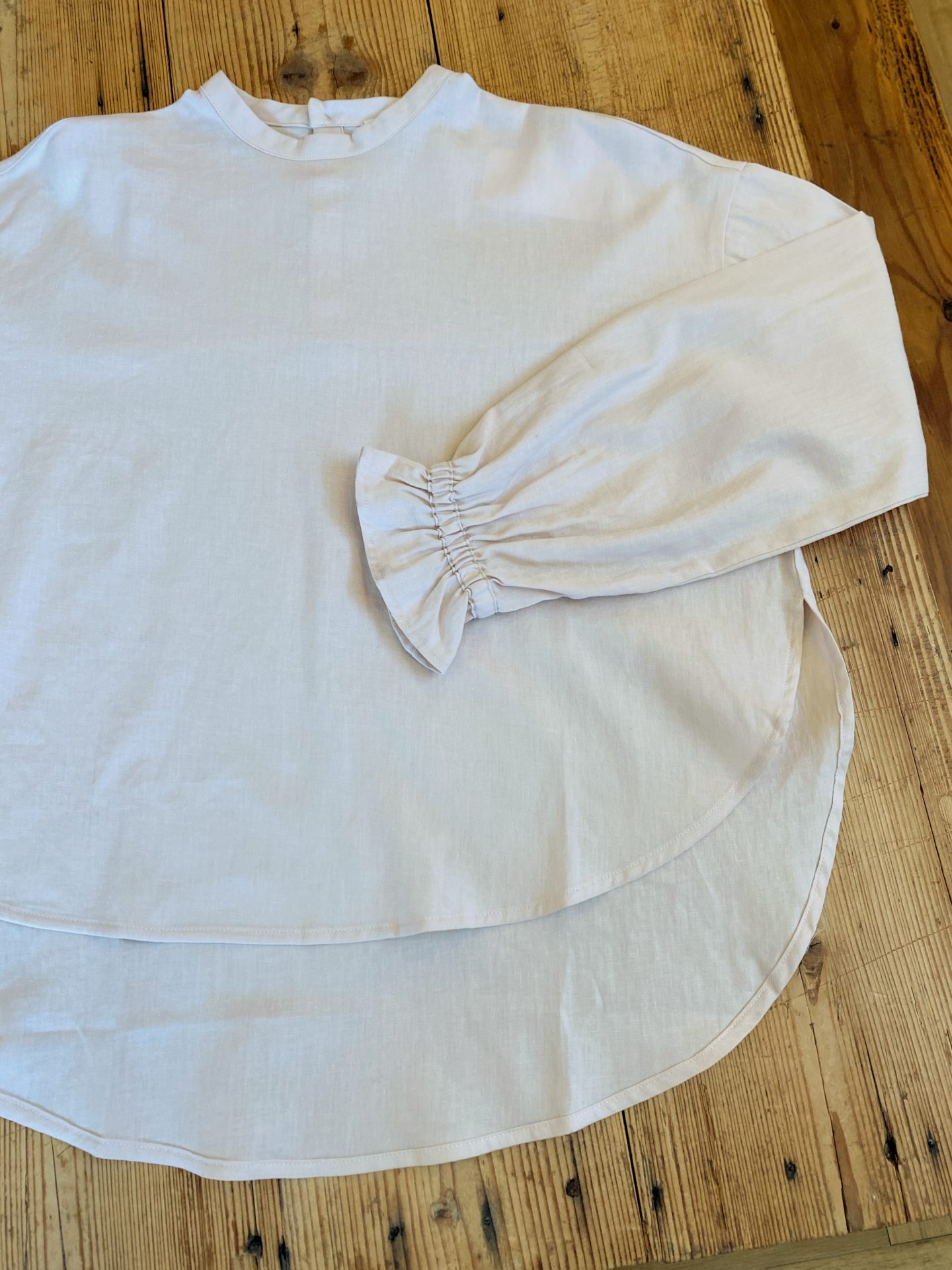 しっかりと洗い加工を入れたコットンリネン素材で、光沢感があります。