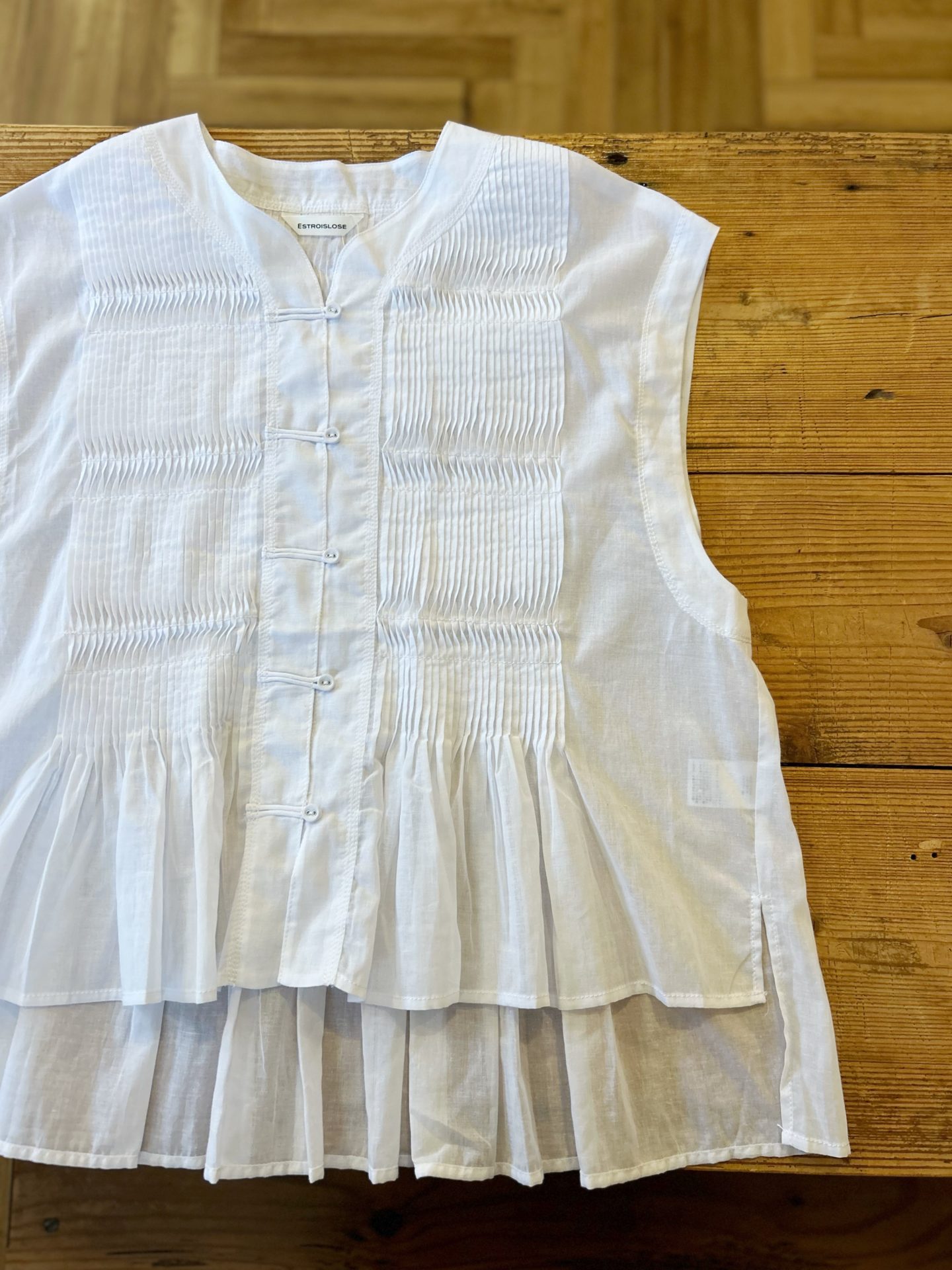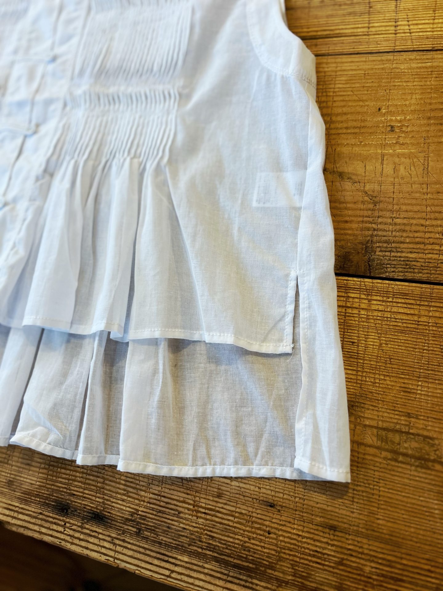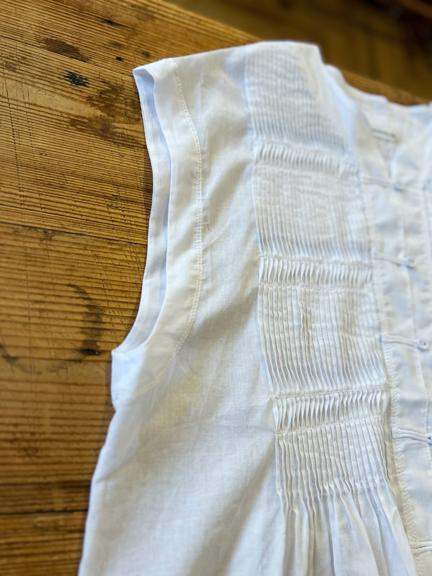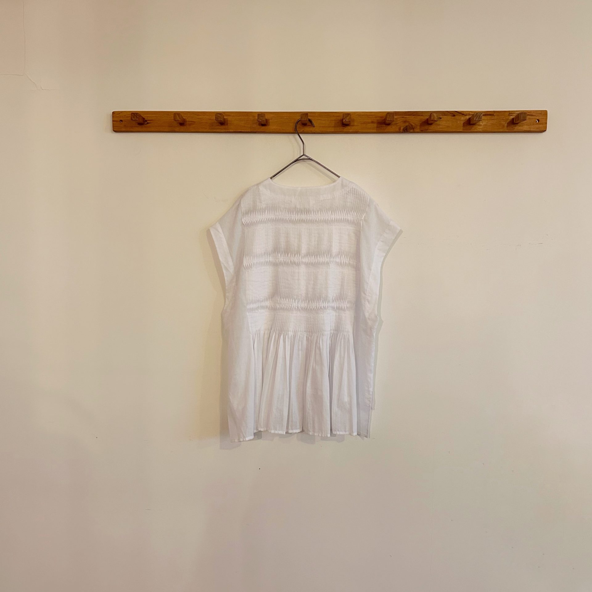 さらりとした肌触りで、細かなピンタックに逆ステッチをかけ動きのある立体感のあるデザインです。