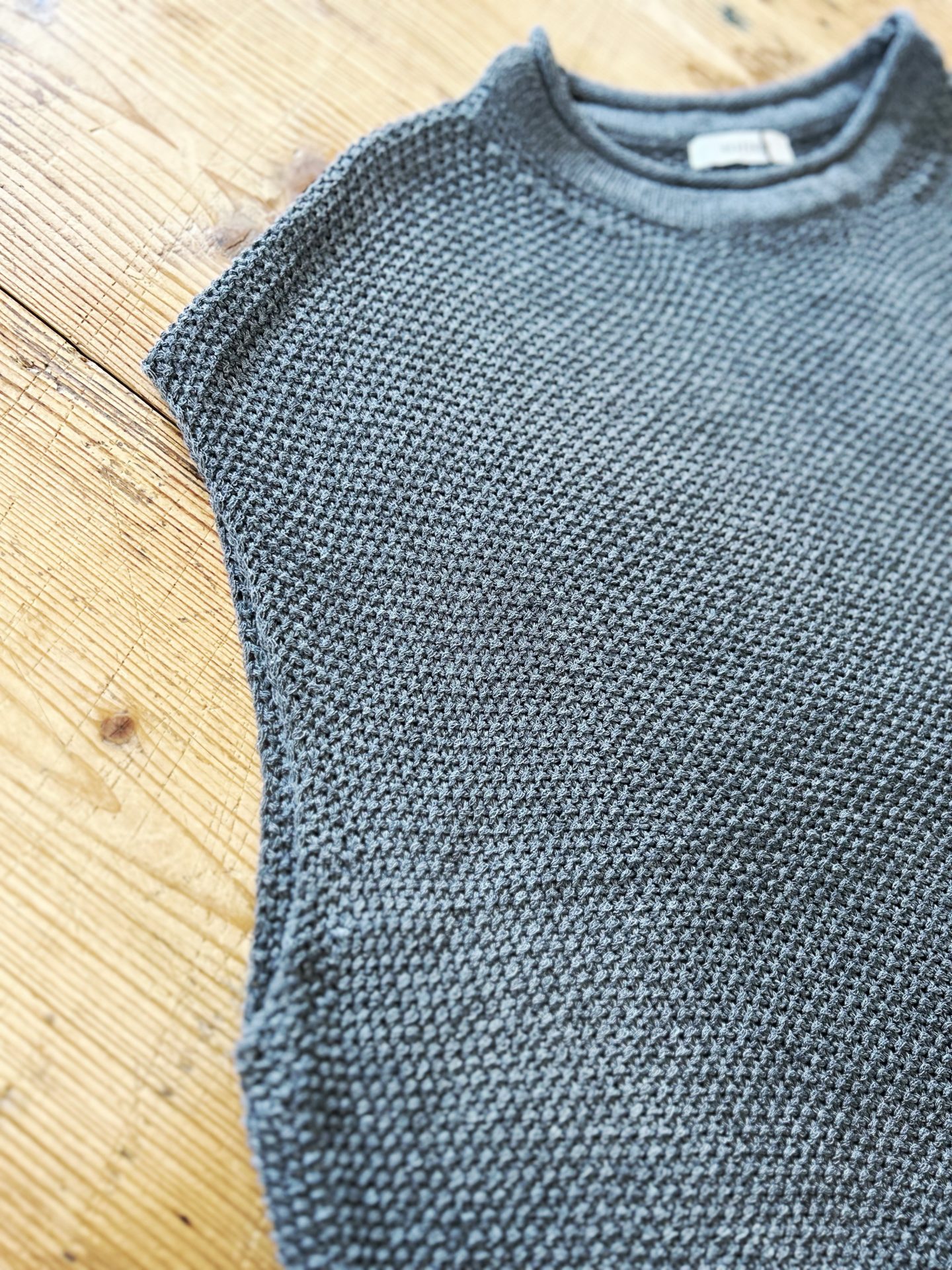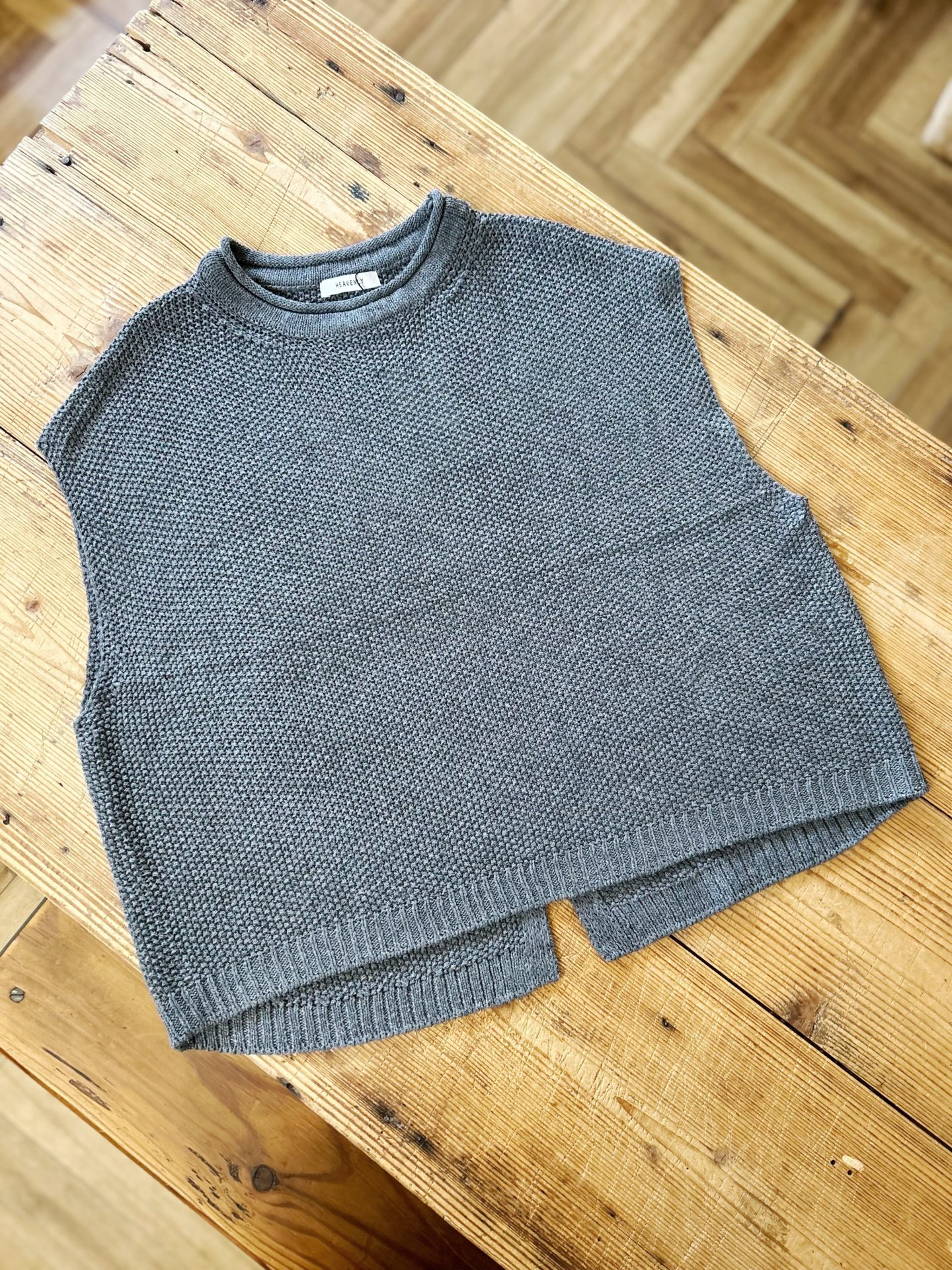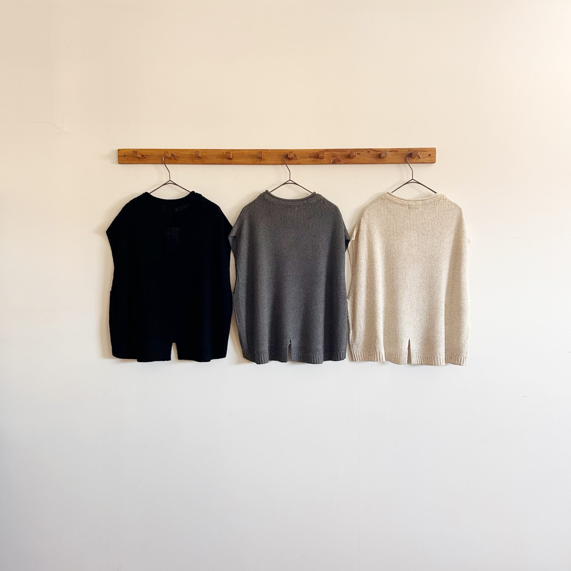 程よい首元の開きと、脇ぐりも広めなので便利なベストです♪