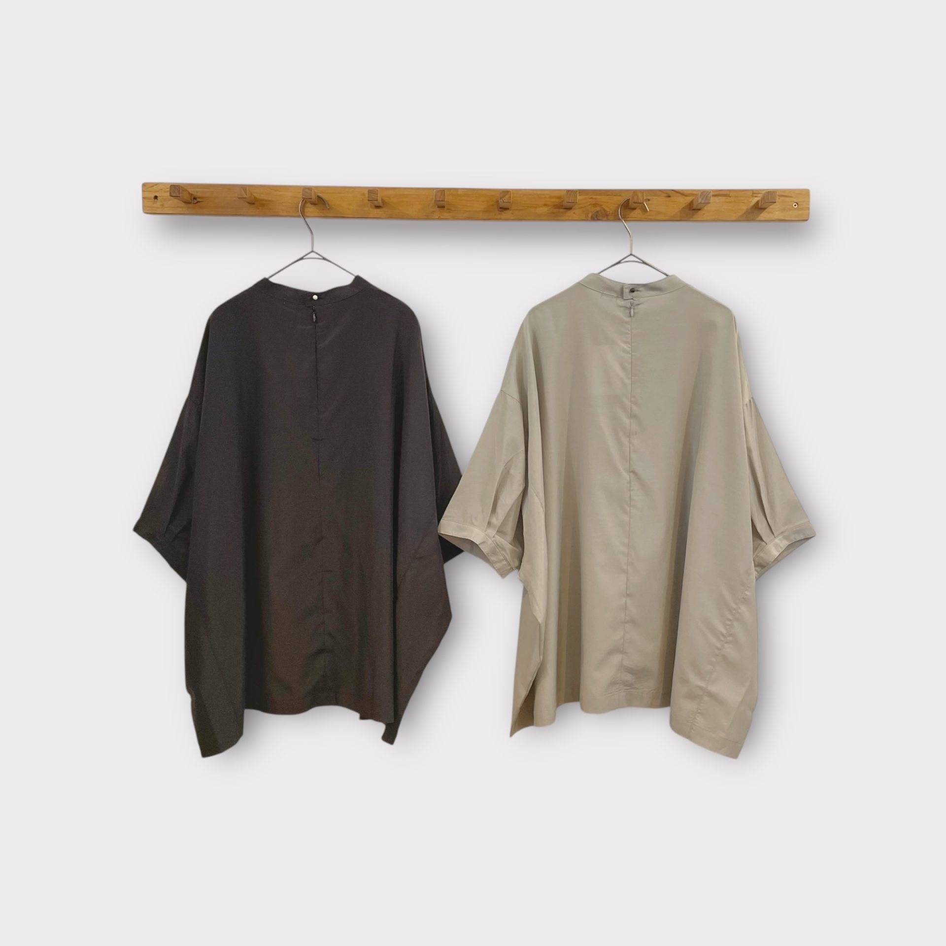 Bico ynir オーバープルオーバー キュプラコットンの素材でシアー感があります。 大きなサイズ感で袖丈は7分袖です。 キュプラ60% コットン40% 15,400yen 2025-04-09 by chabbit ynir < ynir Ynir >