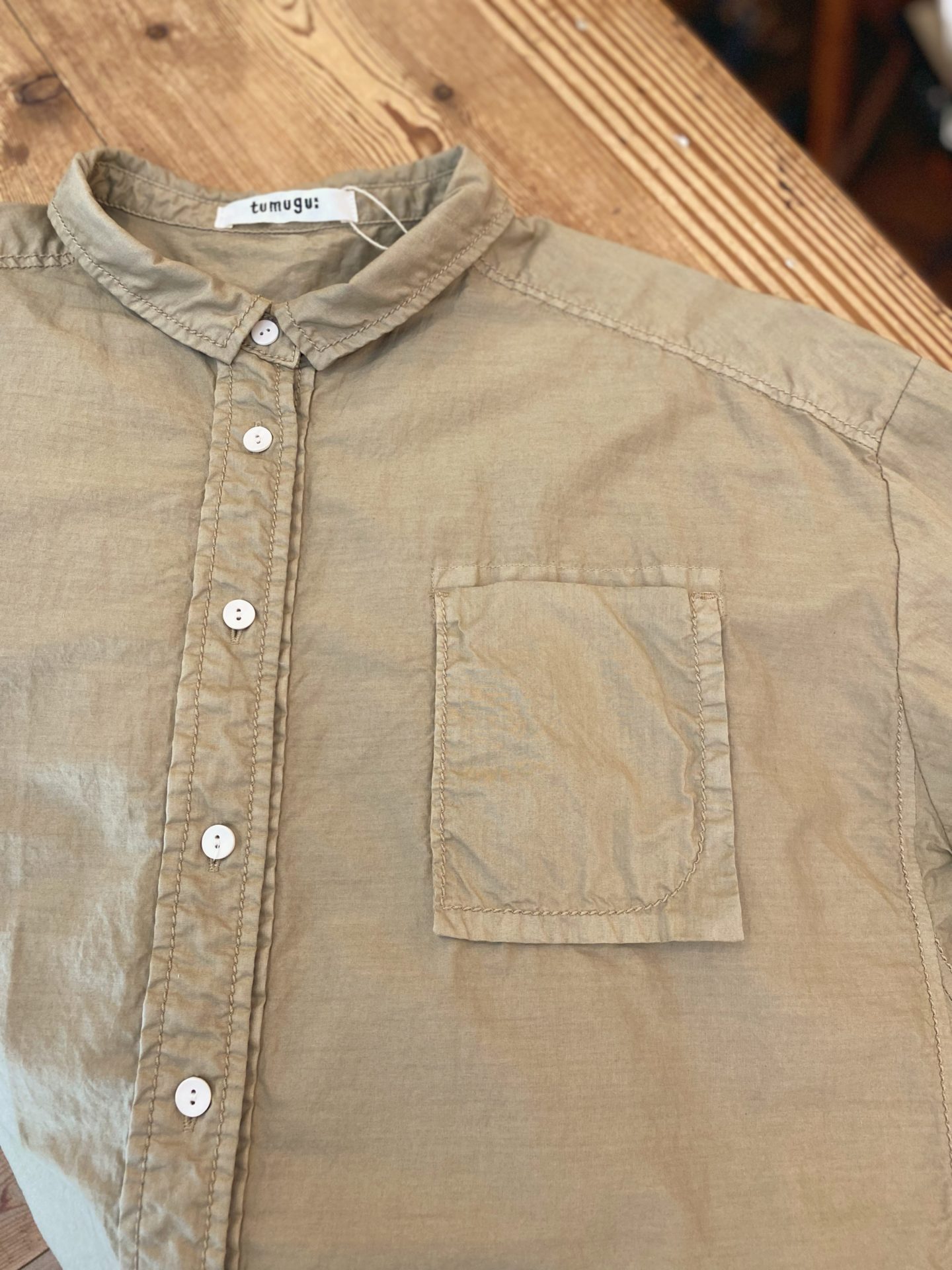 独特のくすみカラーと柔らかさを併せ持ったタイプライター生地のシャツです。