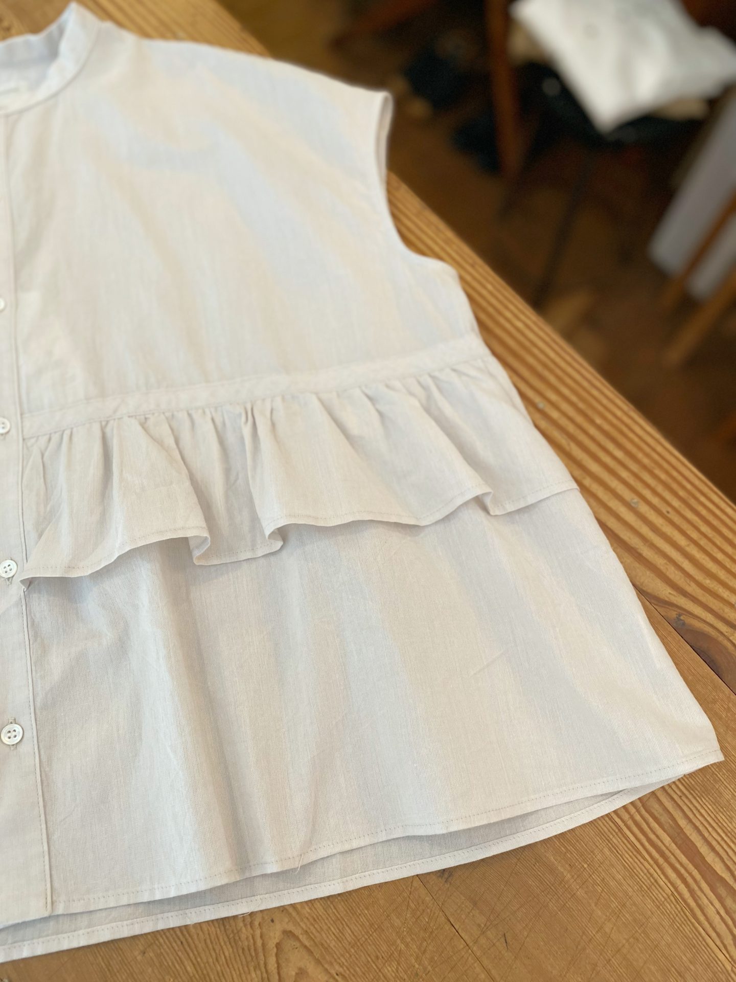 Bico NOUVELLES DU PARADIS フレンチフリルブラウス 涼やかなコットンリネンの生地です。 洗いざらしのまま着れる素材感ですよ! 風通りが良く空気が抜けるシルエットです♪ cotton85% リネン15% 16,280yen 2025-05-02 by chabbit NOUVELLES DU PARADIS < tumugu ynir >