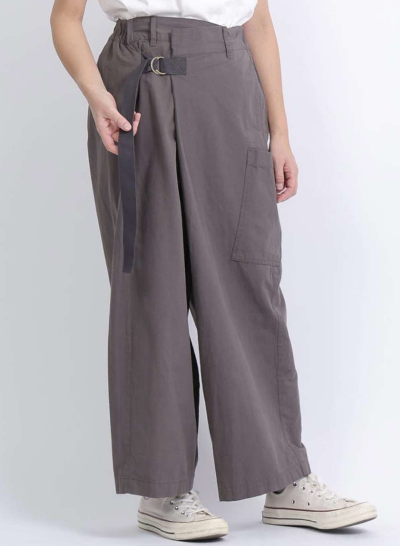 ワークテイストなアシンメトリーデザインが魅力のベルト付きパンツです。