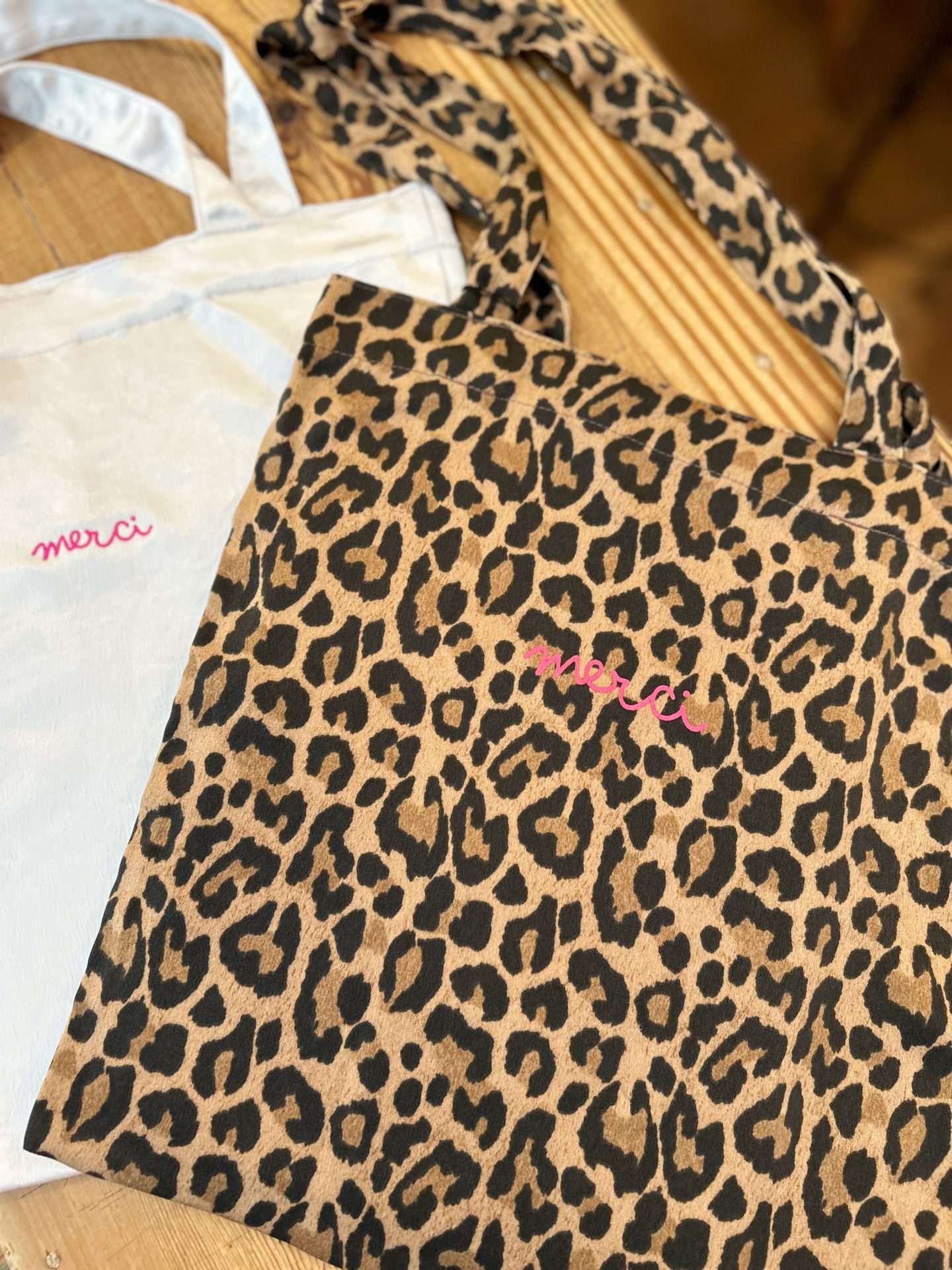 レオパード柄と、シルバーサテンのそれぞれにピンクのワンポイントが可愛いですよ☆