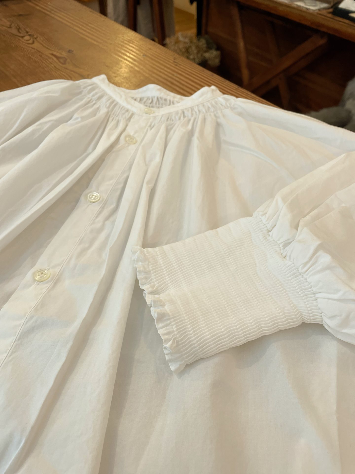Bico UNIVERSAL TISSU バンドカラーシャーリングブラウス シルキーな肌触りです。 衿ぐり・袖口にシャーリング、両脇スリットが入っていますよ! 1枚でオシャレに着れます♪ コットン100% 16,500yen 2025-08-11 by chabbit UNIVERSAL TISSU < LILOU +LILY Brocante >