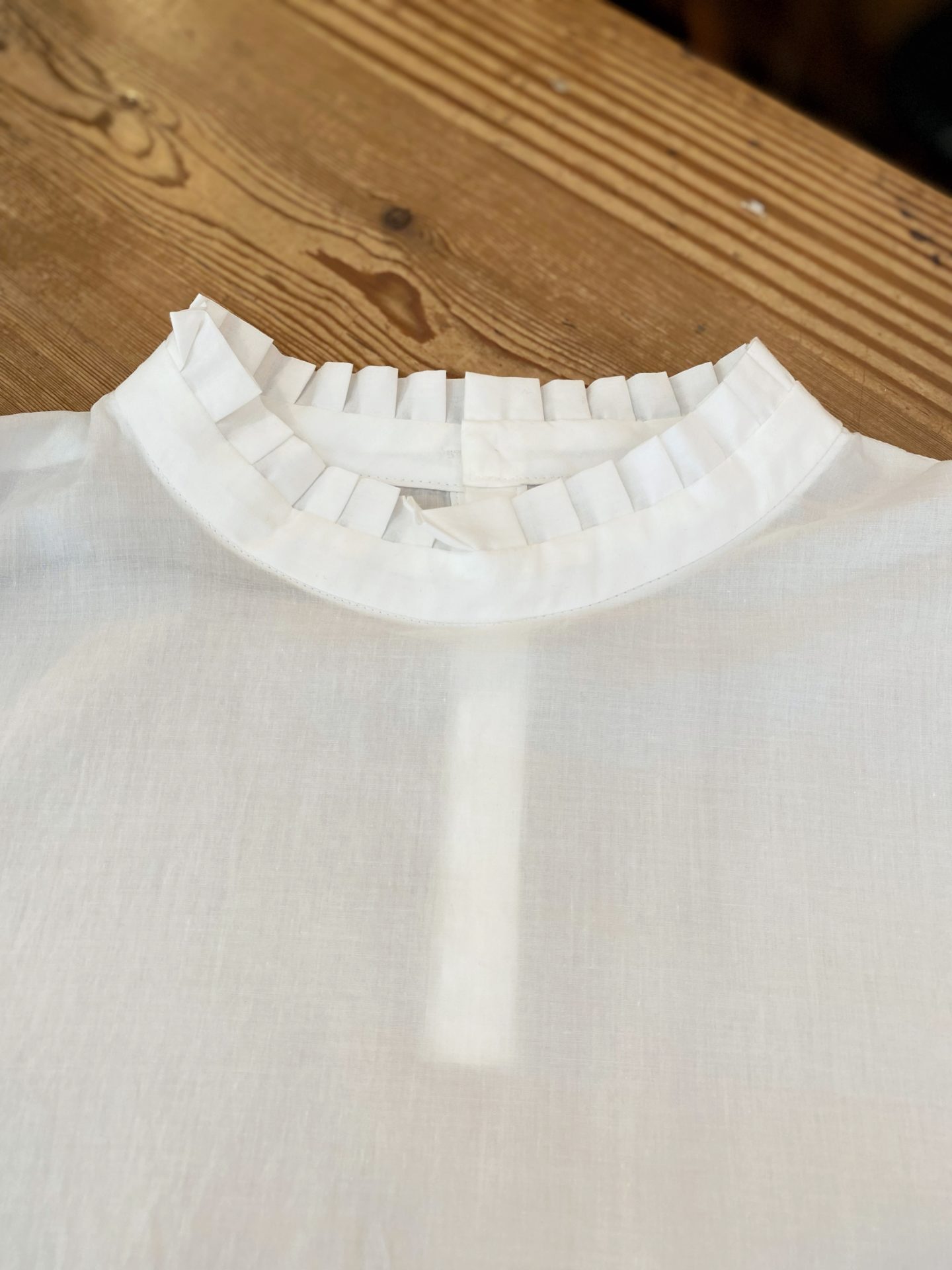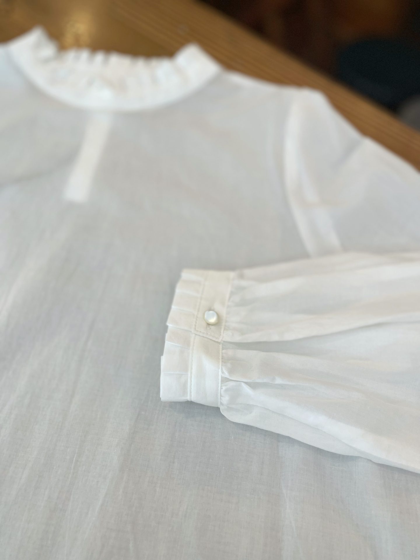 Bico Utilite スタンドフリルカラーブラウス オフシロ 以前も人気のあったブラウス、柔らかいコットン生地です♪ 顔周りをぱっと明るく華やかにしてくれる素敵なブラウスです☆ 綿 100% 19,800yen 袖口にはちいさなギャザーをあしらい、腕まわりや裾にかけてはふんわりシルエットになっています♪ 2025-08-22 by chabbit utilite < Utilite Utilite >