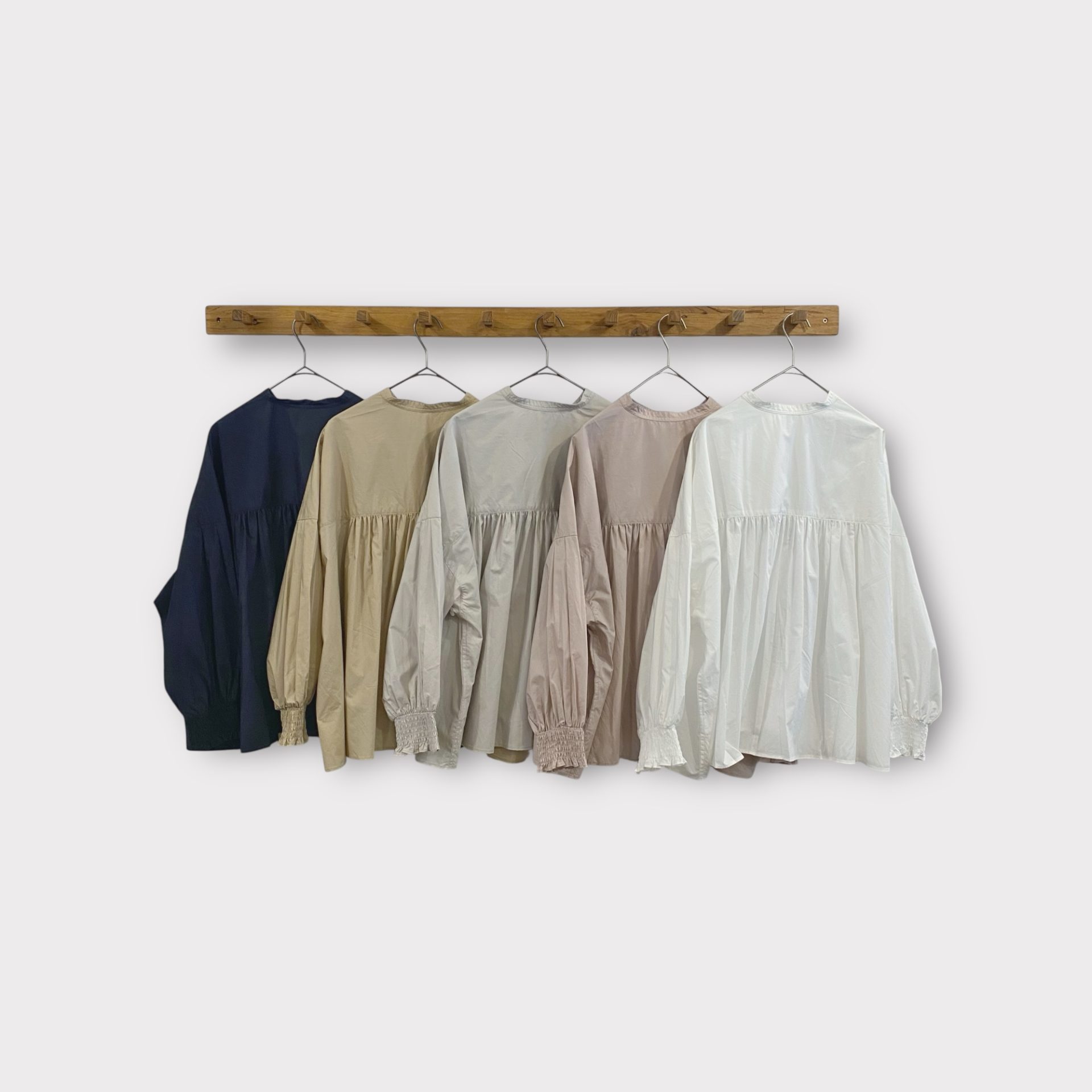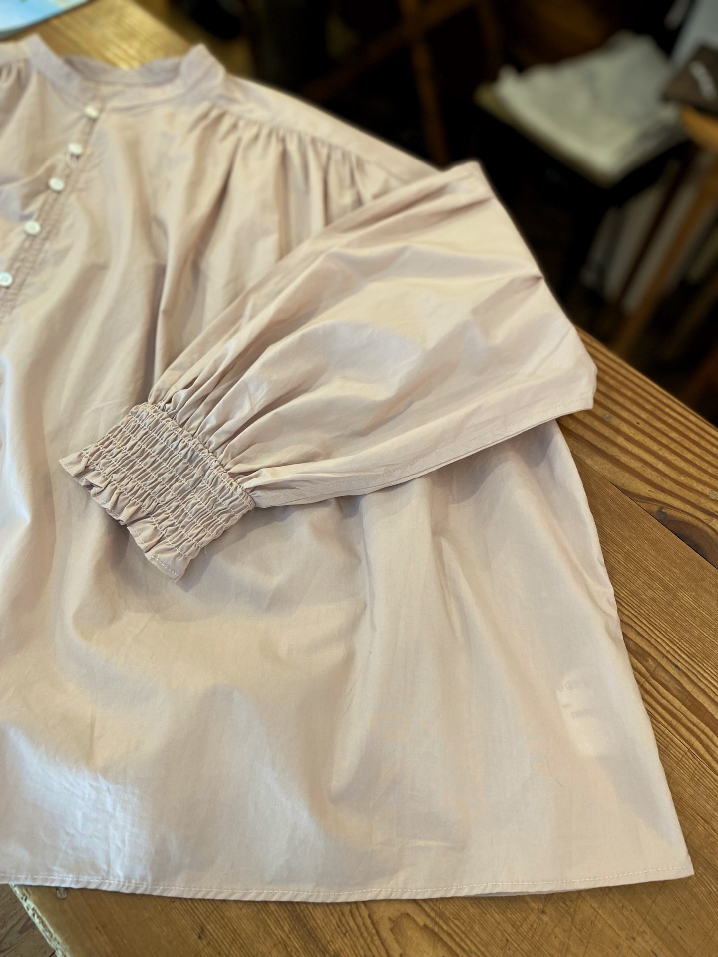 バンドカラーで袖口がシャーリングになっている、毎回人気のブラウスです!