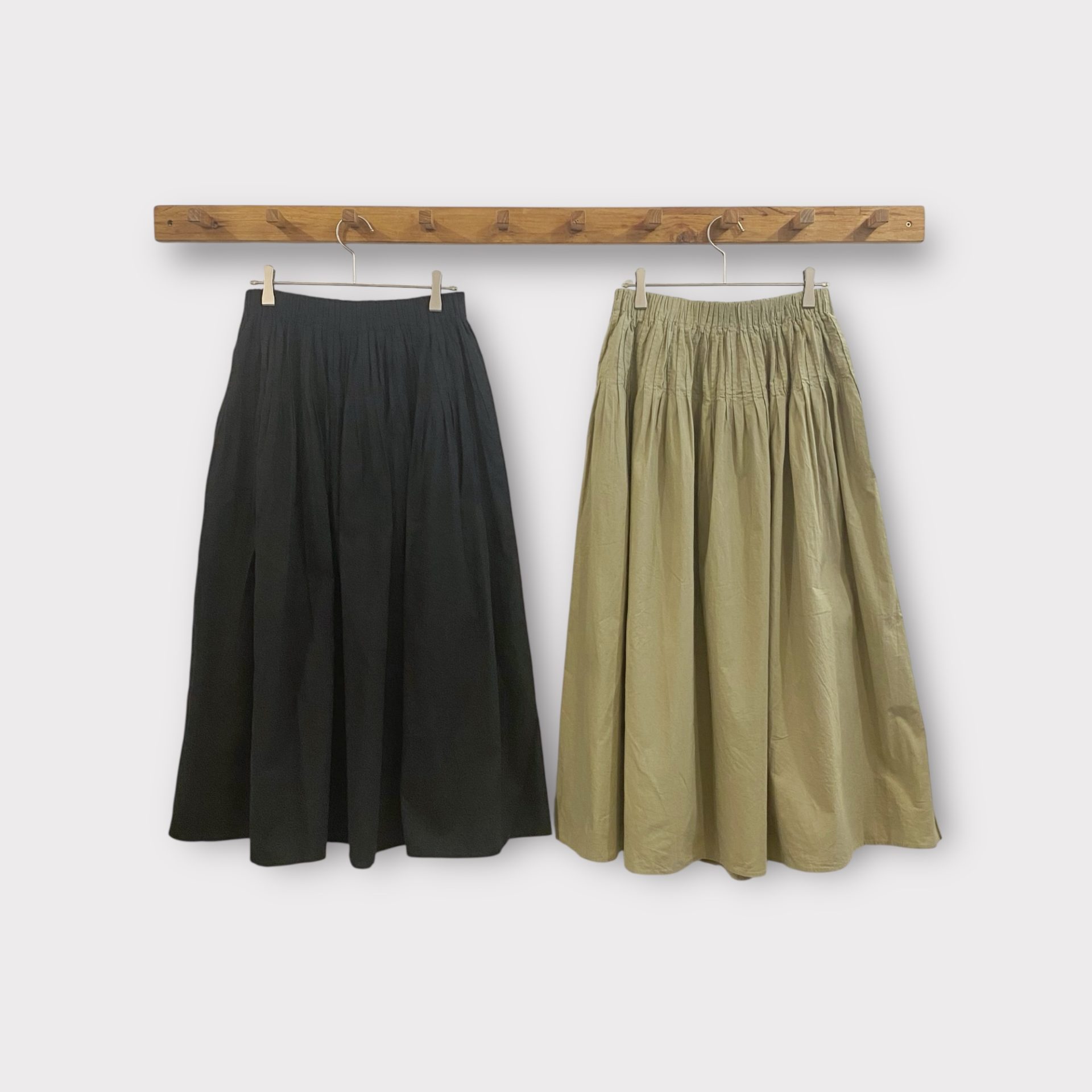 Bico YARRA INDIAウエストピンタックスカート 程よいハリ感と柔らかさを兼ね備えたキャンブリック生地を起毛して仕立てた、上品で大人らしいスカートです。細かく施されたピンタックがアクセントとなり、ウエストまわりをすっきり見せながら、裾にかけてふんわり広がるシルエットが女性らしさを引き立てくれますよ! 綿100% 着丈 84cm 13,200yen 2025-09-06 by chabbit YARRA < D.M.G FILUM >