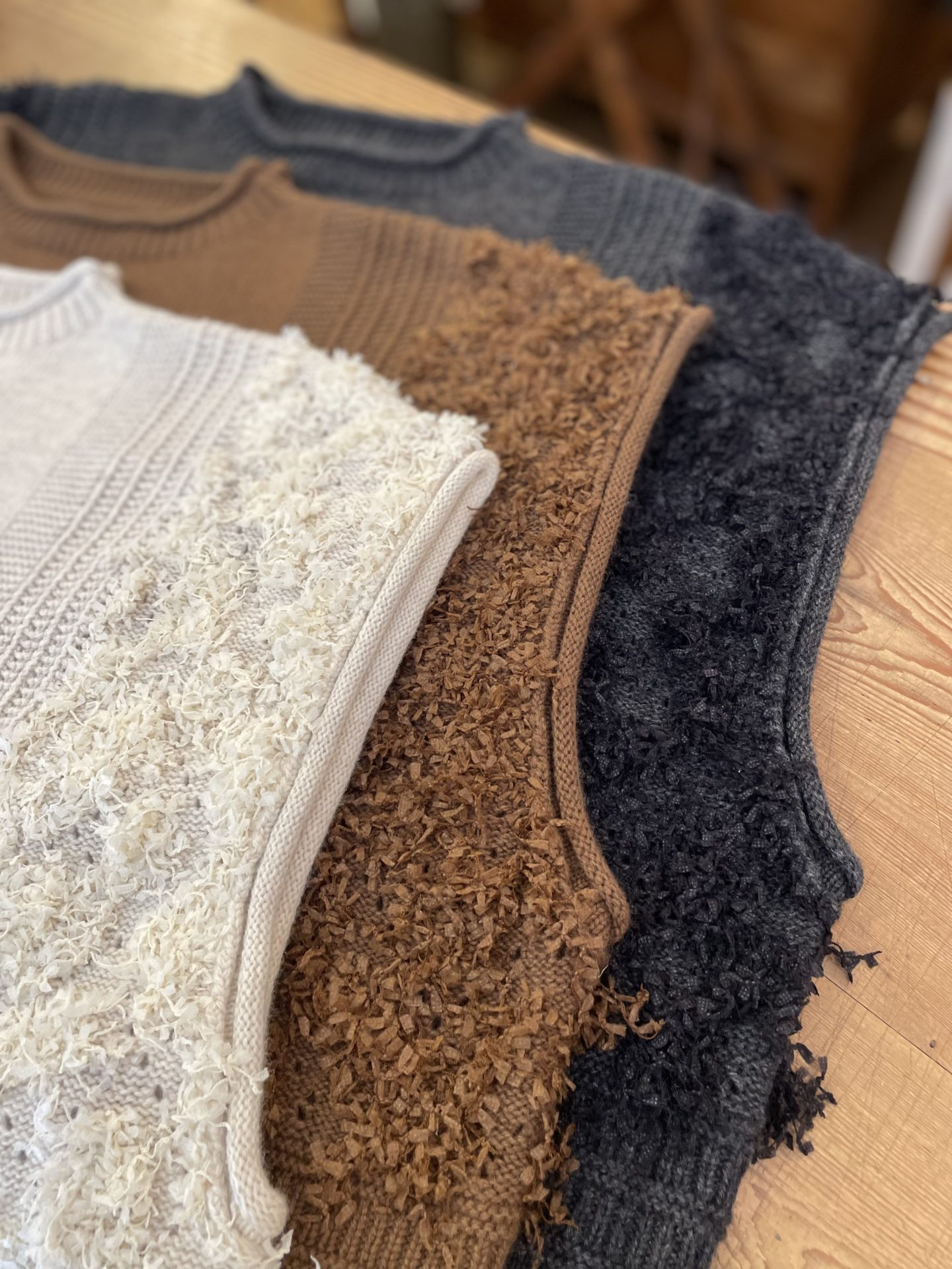 Bico tumugu ウールアンゴラフリンジベスト 立体感のあるかわいいベストです♪ (本体) 毛55% ナイロン30% アクリル10% アンゴラ5% (別糸) ナイロン100% 18480yen 2025-09-12 by chabbit tumugu < NATURAL LAUNDRY tumugu >