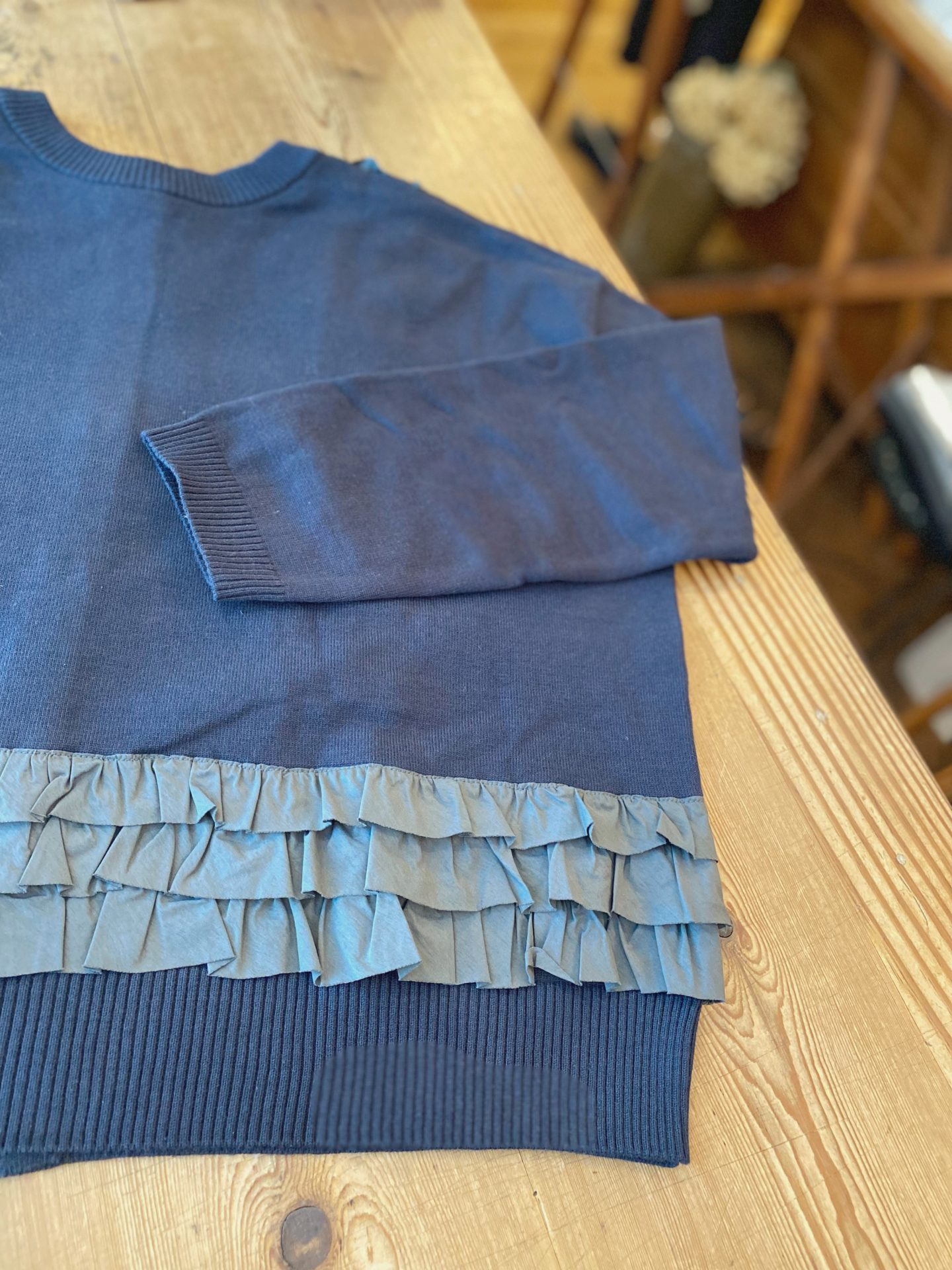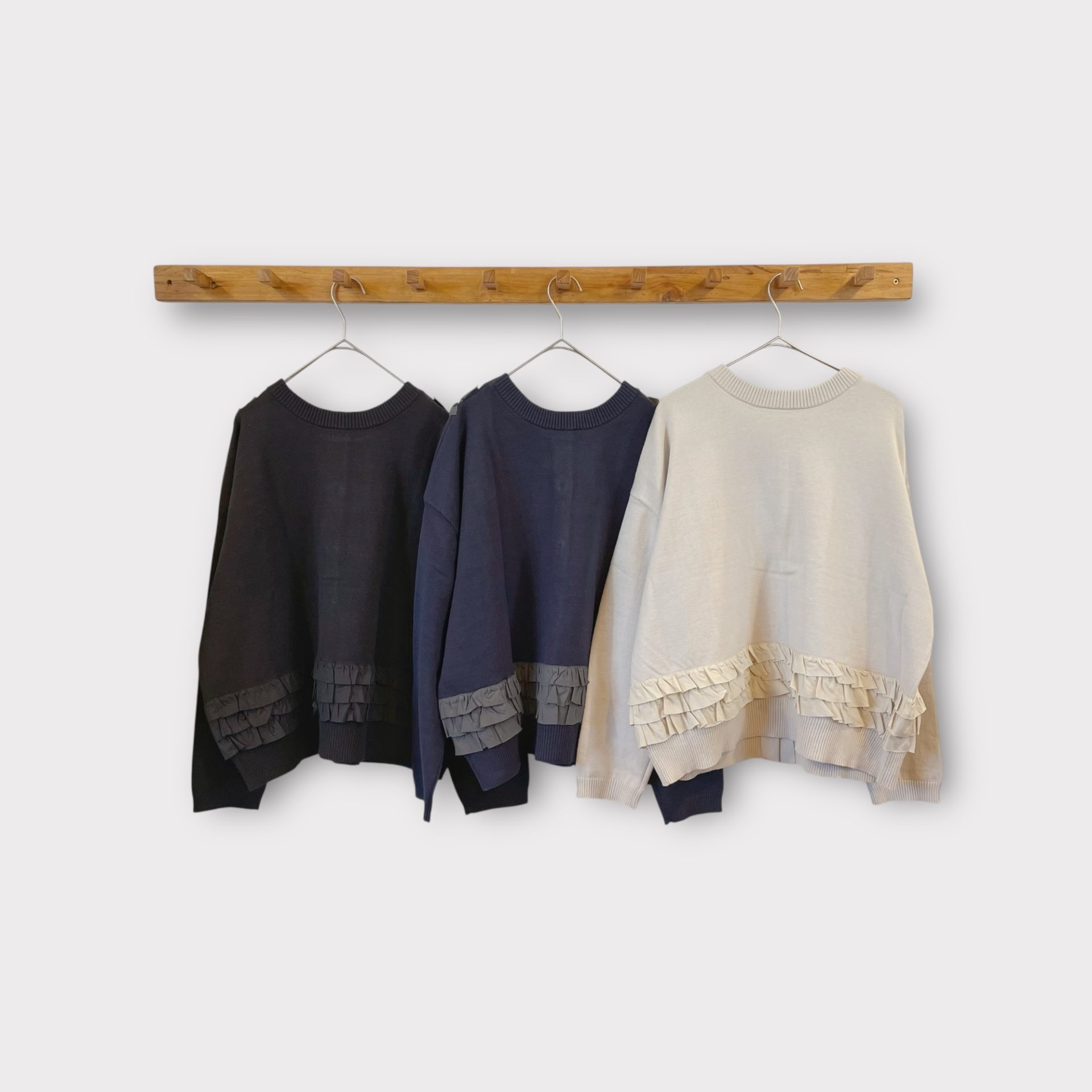 前後でフリルの付け方を変えて印象が違うデザインがポイントです。