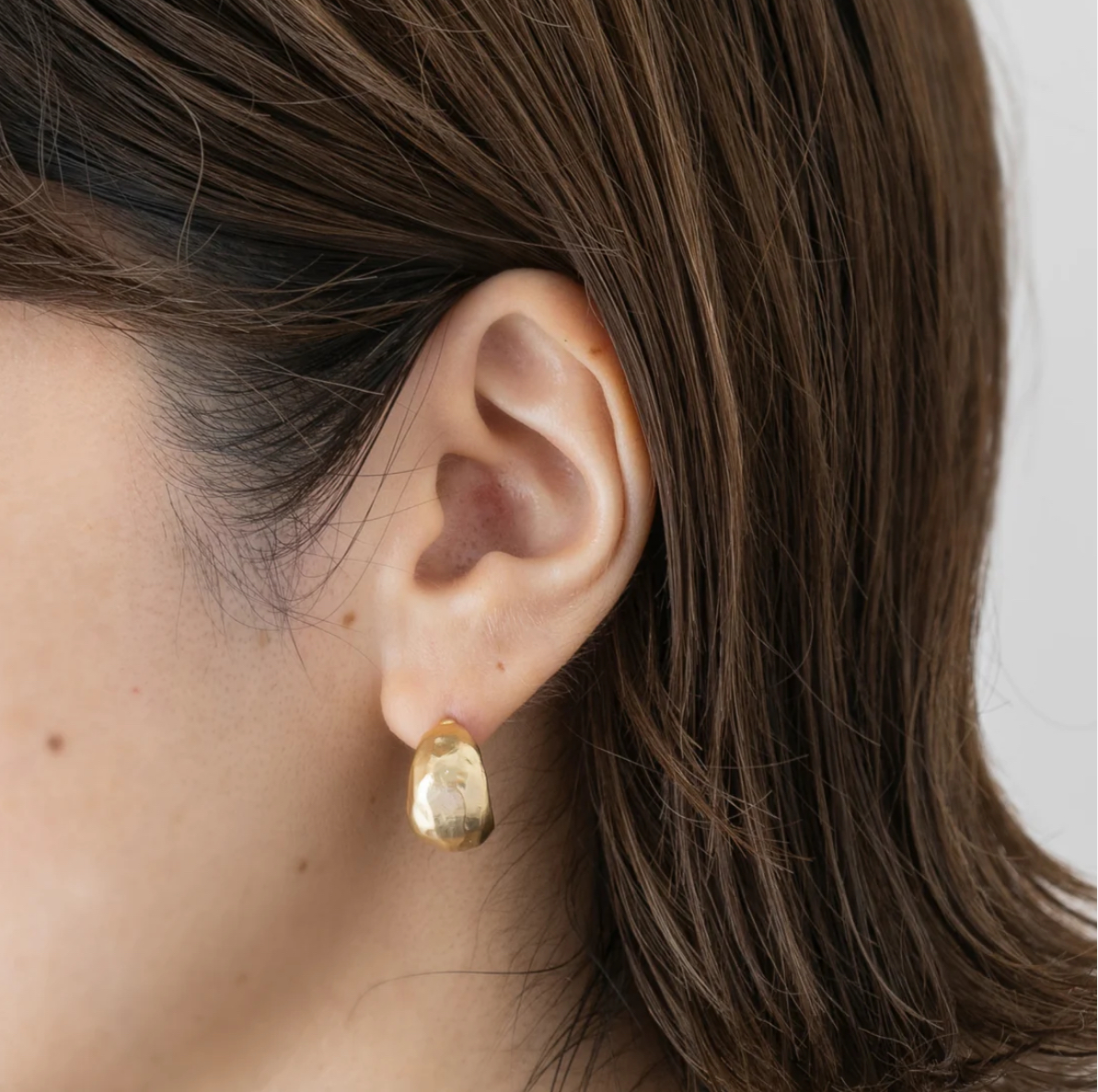プランプ(ぷっくりとした)フォルムに粗めのツチメテクスチャーを施したフープタイプのピアスです♪温かみのある質感とボリュームで顔周りのアクセントにおすすめですよ☆