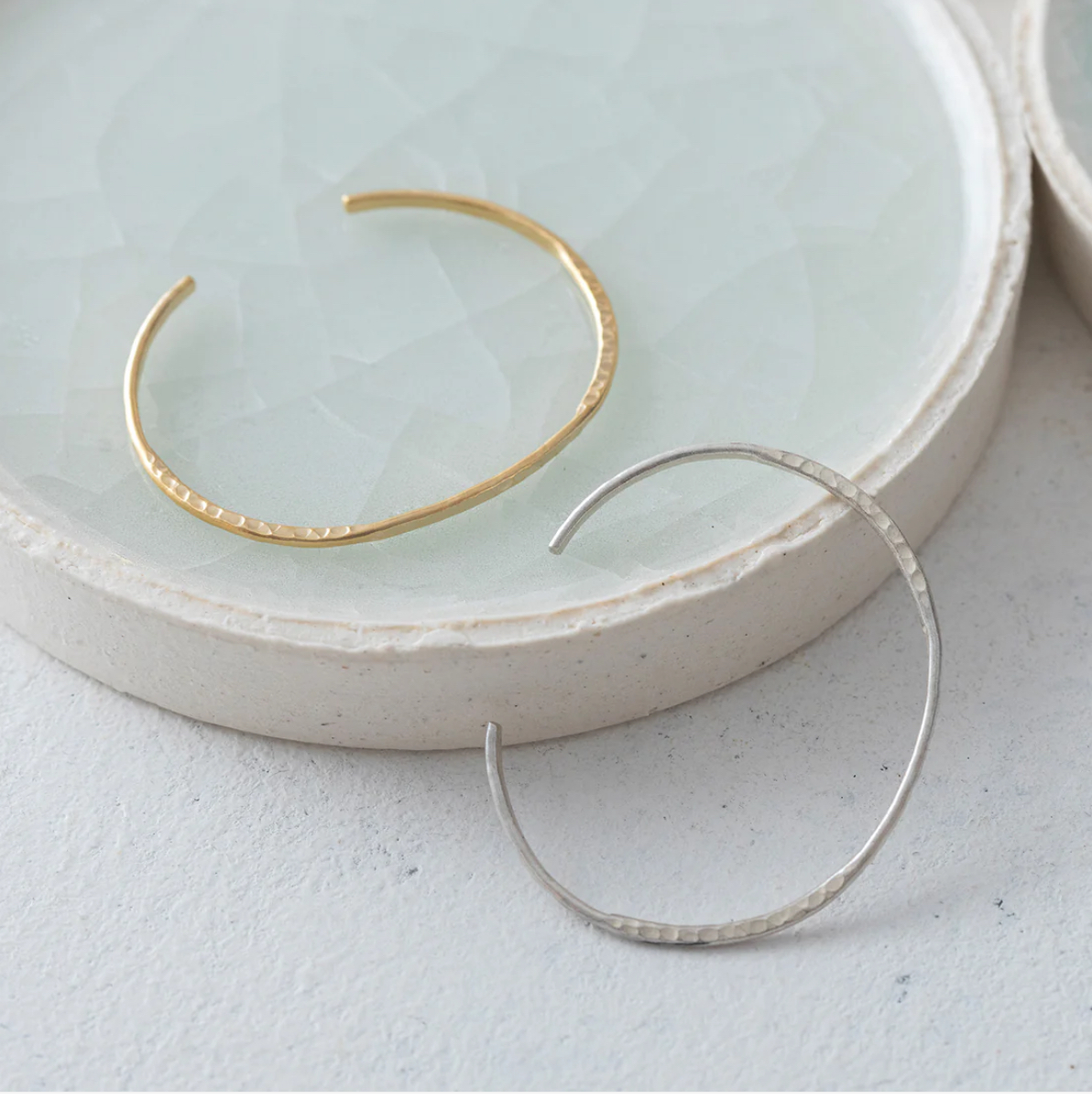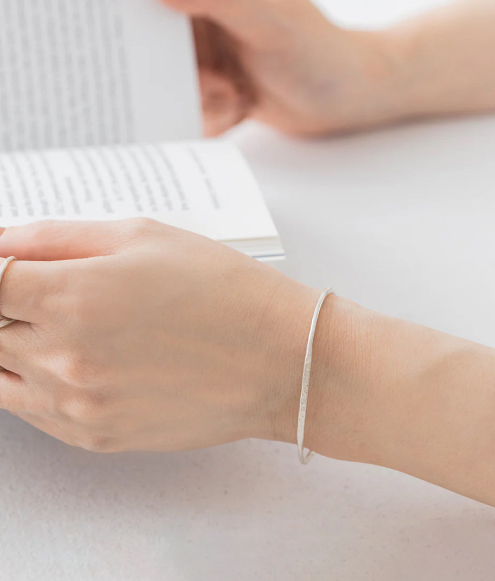 Bico Pisceans フロウラインバングル マットゴールド・マットシルバー 真鍮線に上面・側面から鎚目加工を施してヒネリを加えたような有機的な流線を表現した、シンプルでクラフトモダンなバングルです♪ 3,520yen 2025-09-26 by chabbit pisceans < Pisceans Pisceans >