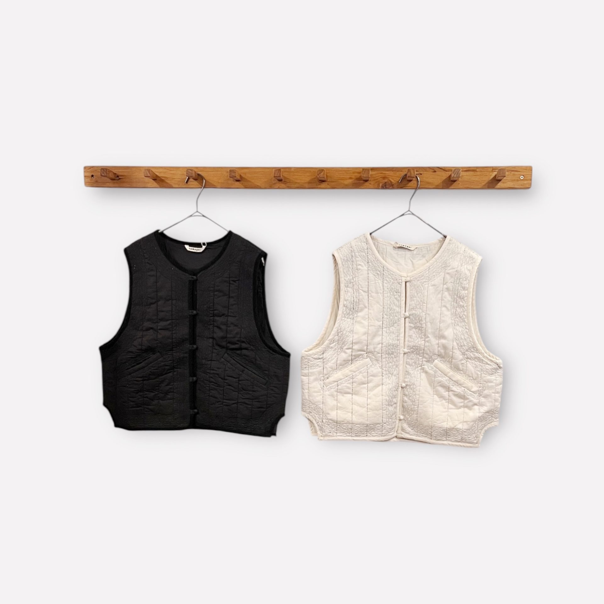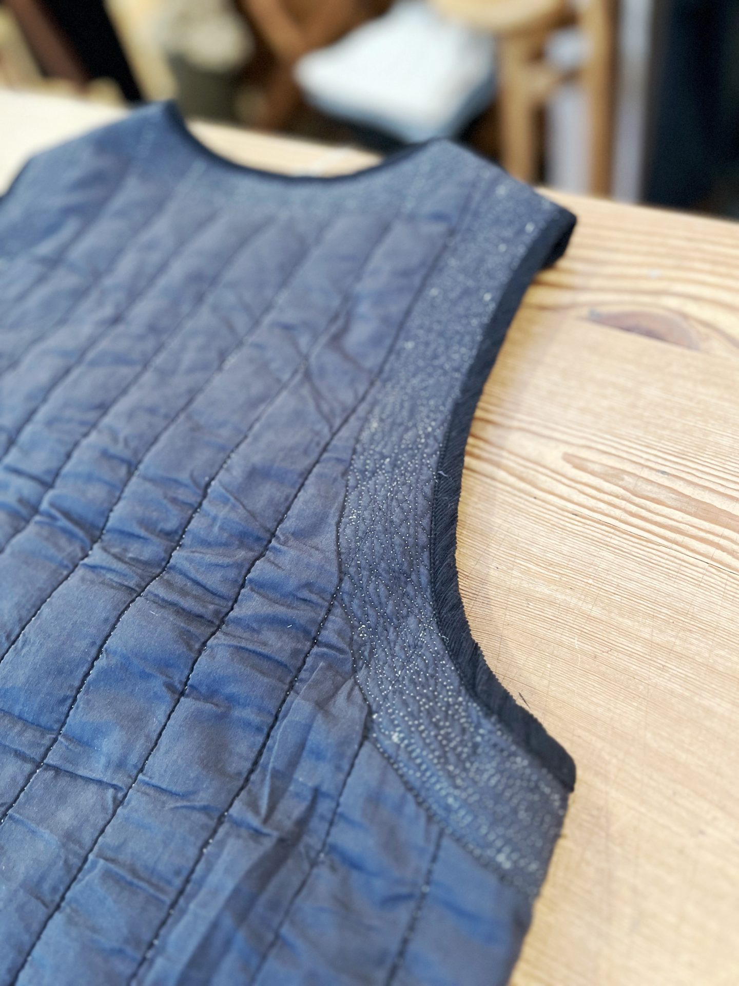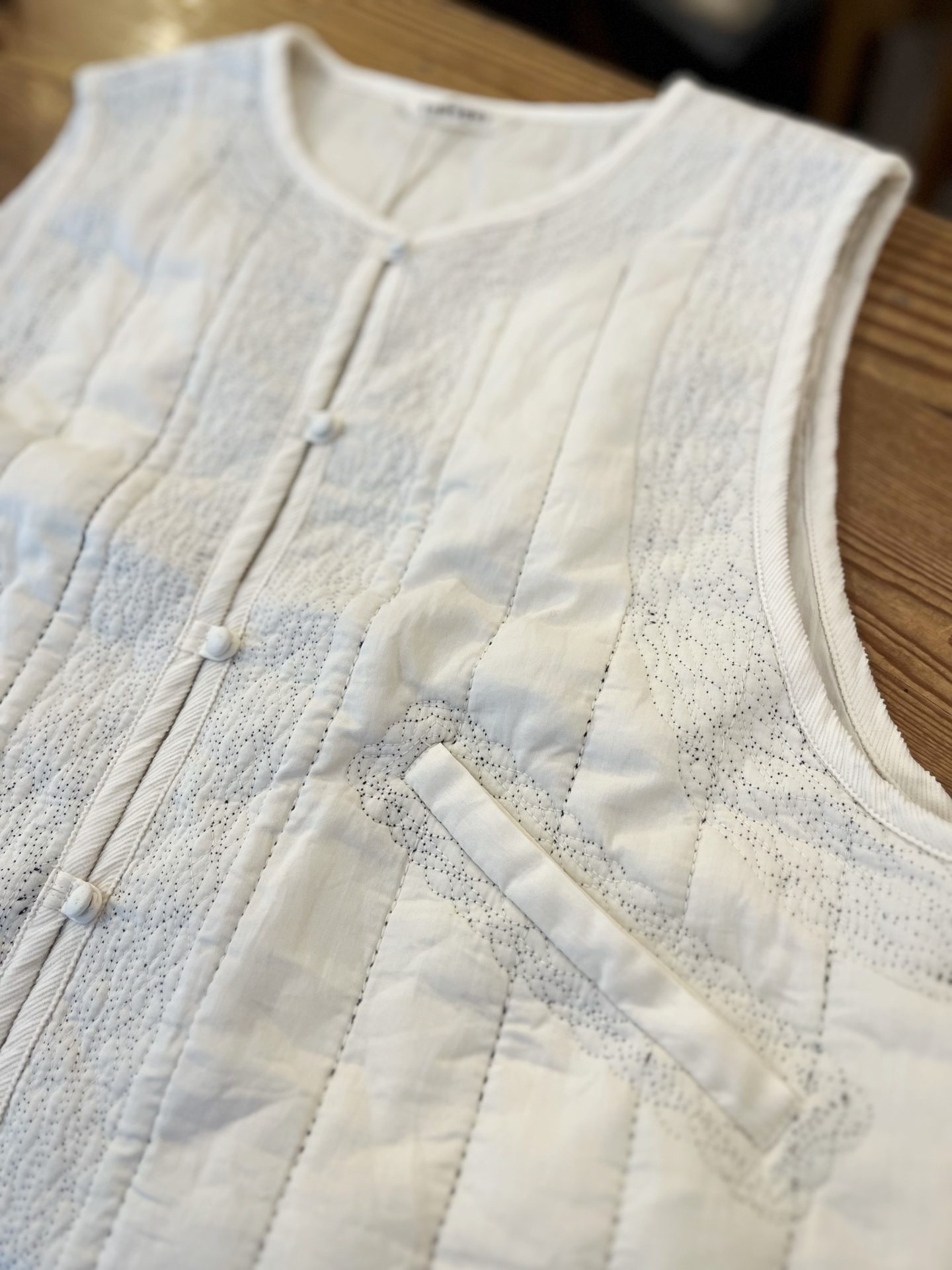 Bico tumugu ベスト 少し光沢のあるコットンサテン生地に繊細なステッチを施し、キルティング加工されています。 縁にはコーデュロイテープが使用されていますよ! 表地 裏地 cotton 100% 中綿 ポリエステル 100% 21,780yen 2025-09-30 by chabbit tumugu < tumugu tumugu >