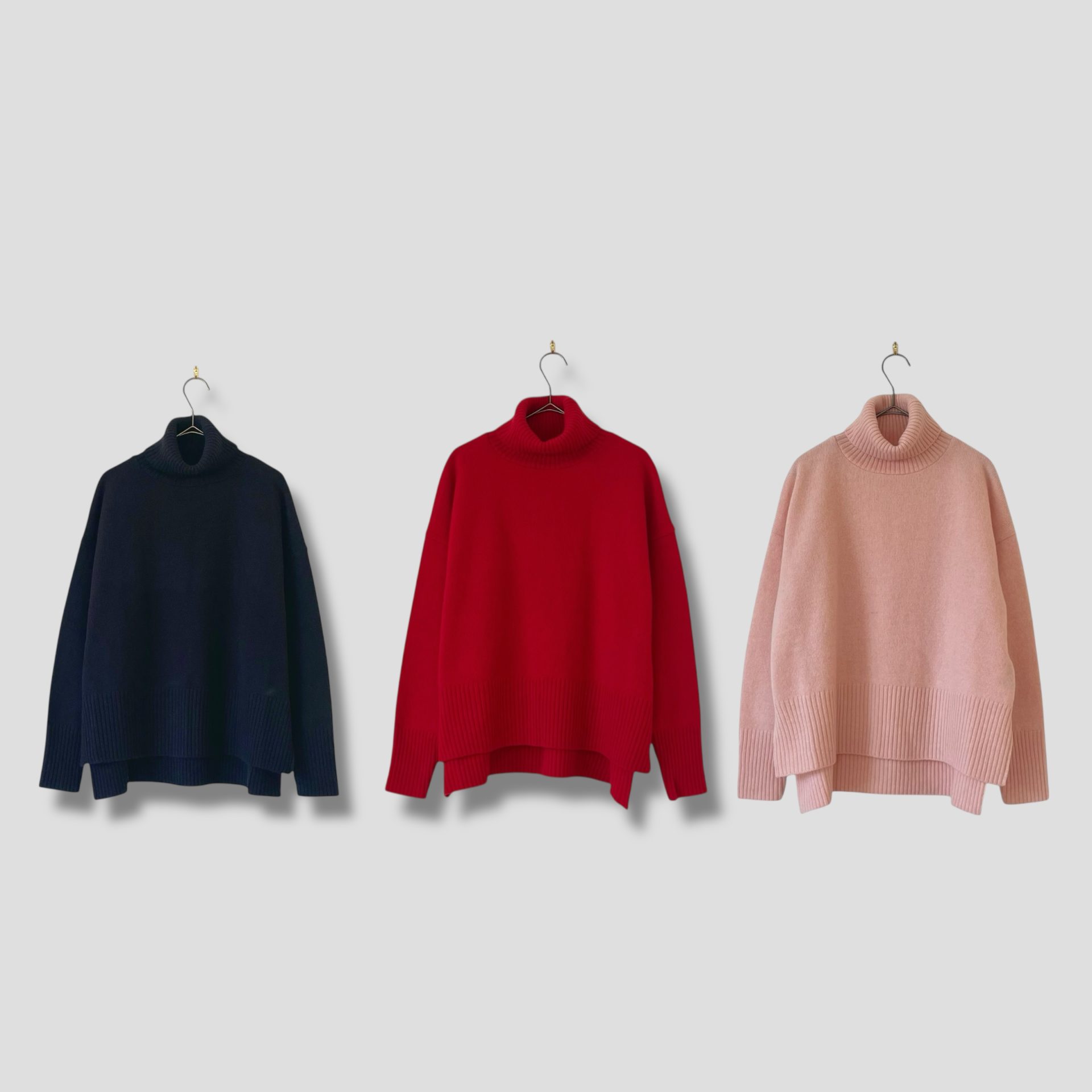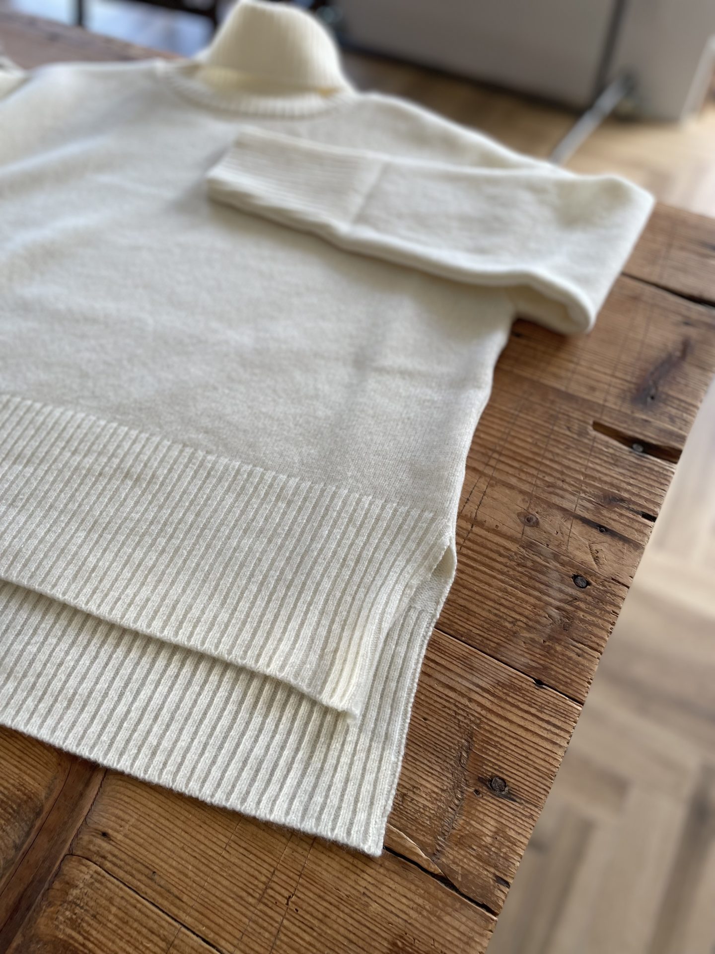 Bico NARU タスマニアラムコモドニットタートル ゆったりとした着まわしやすいタスマニアラムコモドニットタートルです。手首と裾の太幅のリブがスタイルアップしてくれます。暖かみあるウールのニットで上品な抜け感が魅力です。 毛 100% 13,750yen 折り返しても着れるタートルネックです。 サイドにスリットがあり前後差のあるデザインです。 後ろサイドはヒップにかかる程よい丈感です。 2025-10-24 by chabbit NARU < tumugu YARRA >