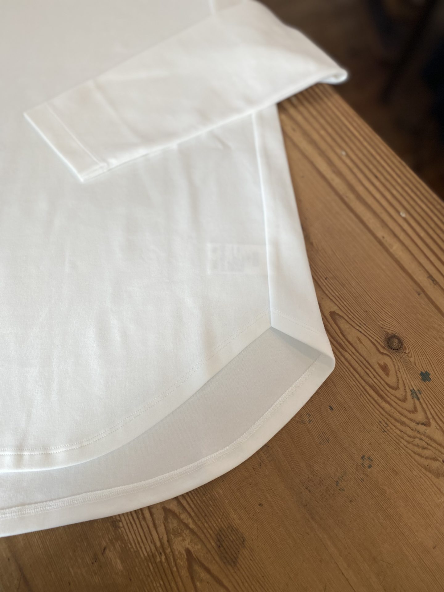 Bico mao made 裾ラウンドヘムTシャツ 肉厚の生地感で、うっすらと起毛をかけた素材です。 素肌が喜ぶ気持ちの良い風合いです。 コットン95% ポリウレタン5% 9,790yen 2025-10-29 by chabbit maomade < REFRAIN Vent d’ouest >