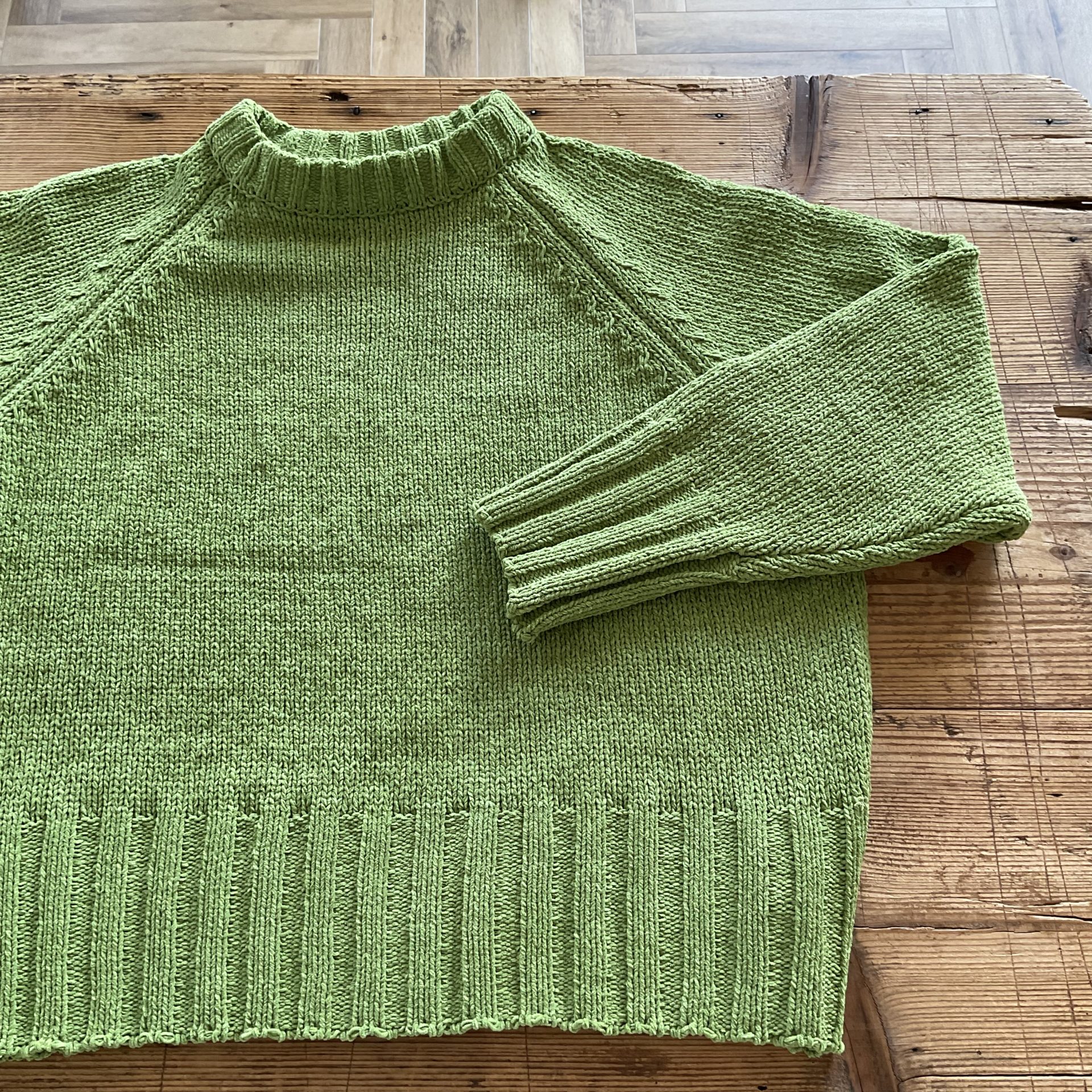ざっくりと編み上げたクルーネックのプルオーバーです。