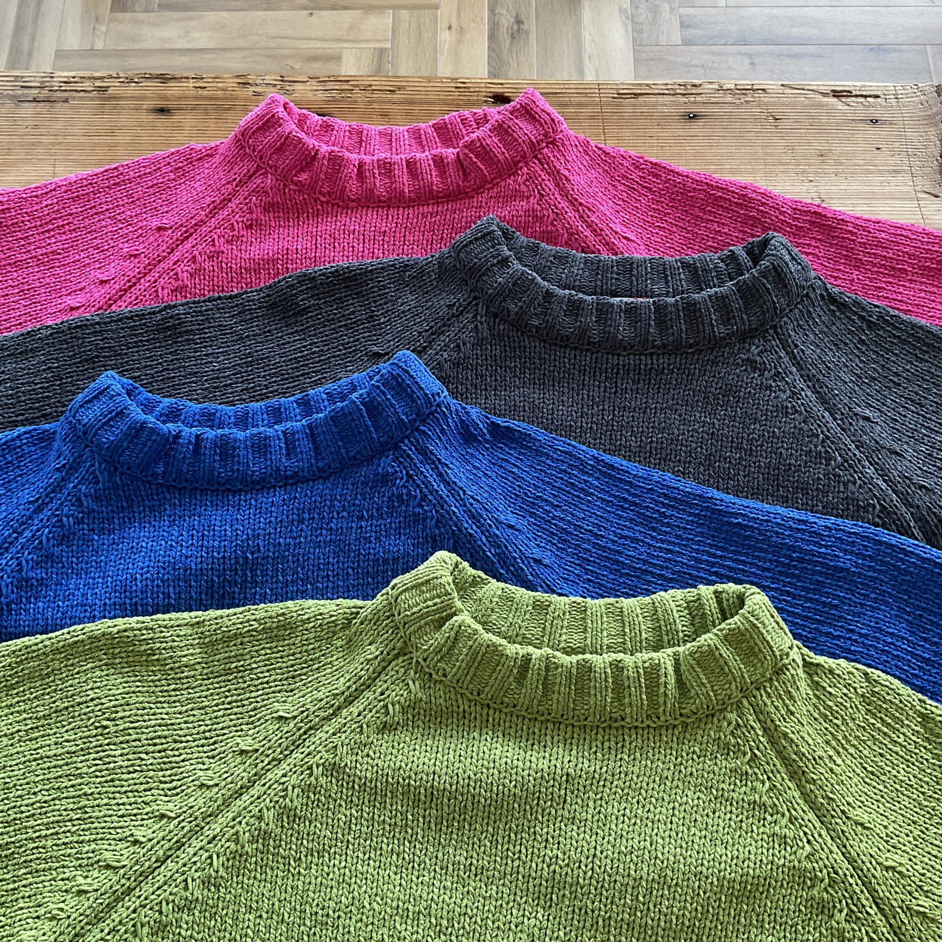 肌に触れるとホッとする心地よさです。ニットの苦手な方にも着ていただけますよ!