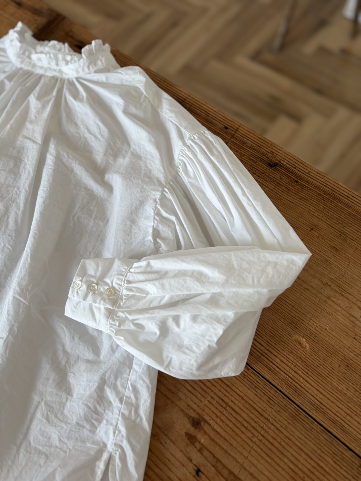 Bico Gauze タイニーフリルブラウス シンプルだけど存在感がある1枚です。 通年のコーディネートを彩る万能ブラウスですよ! コットン 100% 18,700yen 2025-11-15 by chabbit Gauze < ynir tumugu >