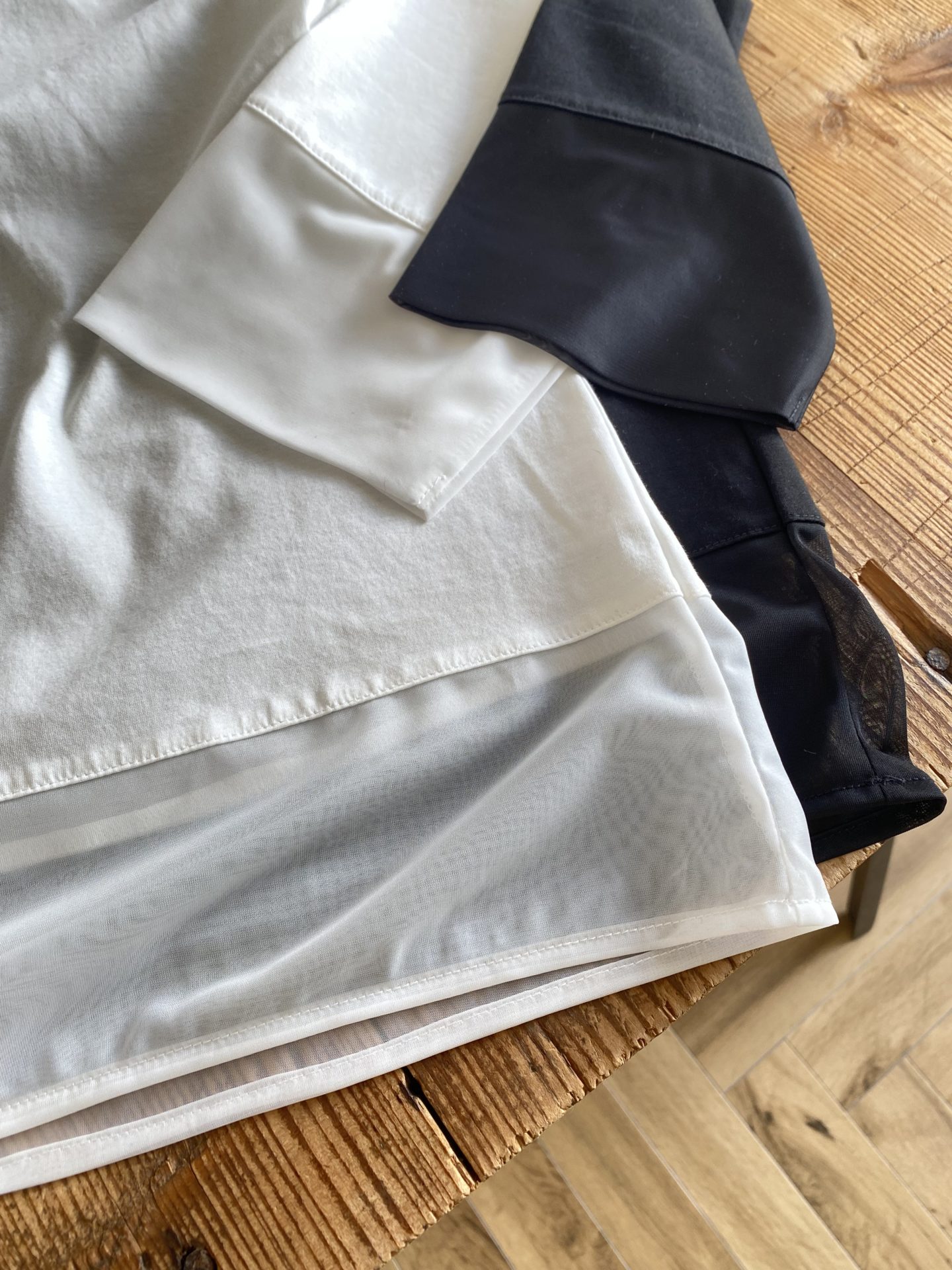 ポイントにシアーなハイケージチュールが使用されています。