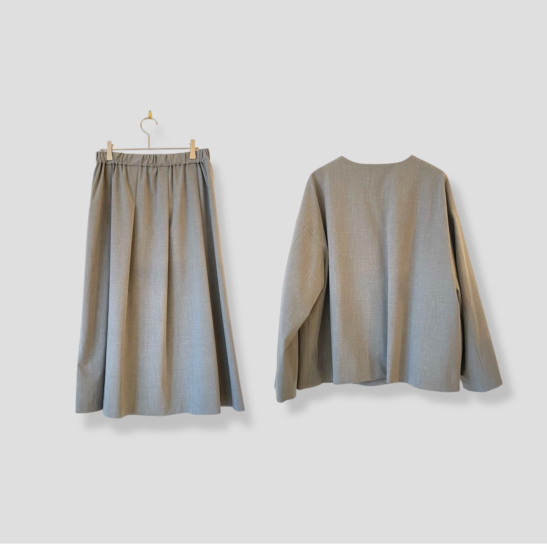 Bico utilite ドロップショルダージャケット & タックフレアースカート 適度にハリを感じるしなやかな風合いの綺麗なシルエットのジャケットとスカートです♪ 心地よいなめらかな肌触りが特徴です☆ ポリエステル 65% レーヨン 29% ポリウレタン 6% ジャケット… 28,600yen スカート… 19,800yen お色は、ライトグレーとクロになります♪ 2025-12-18 by chabbit utilite < utilite utilite >