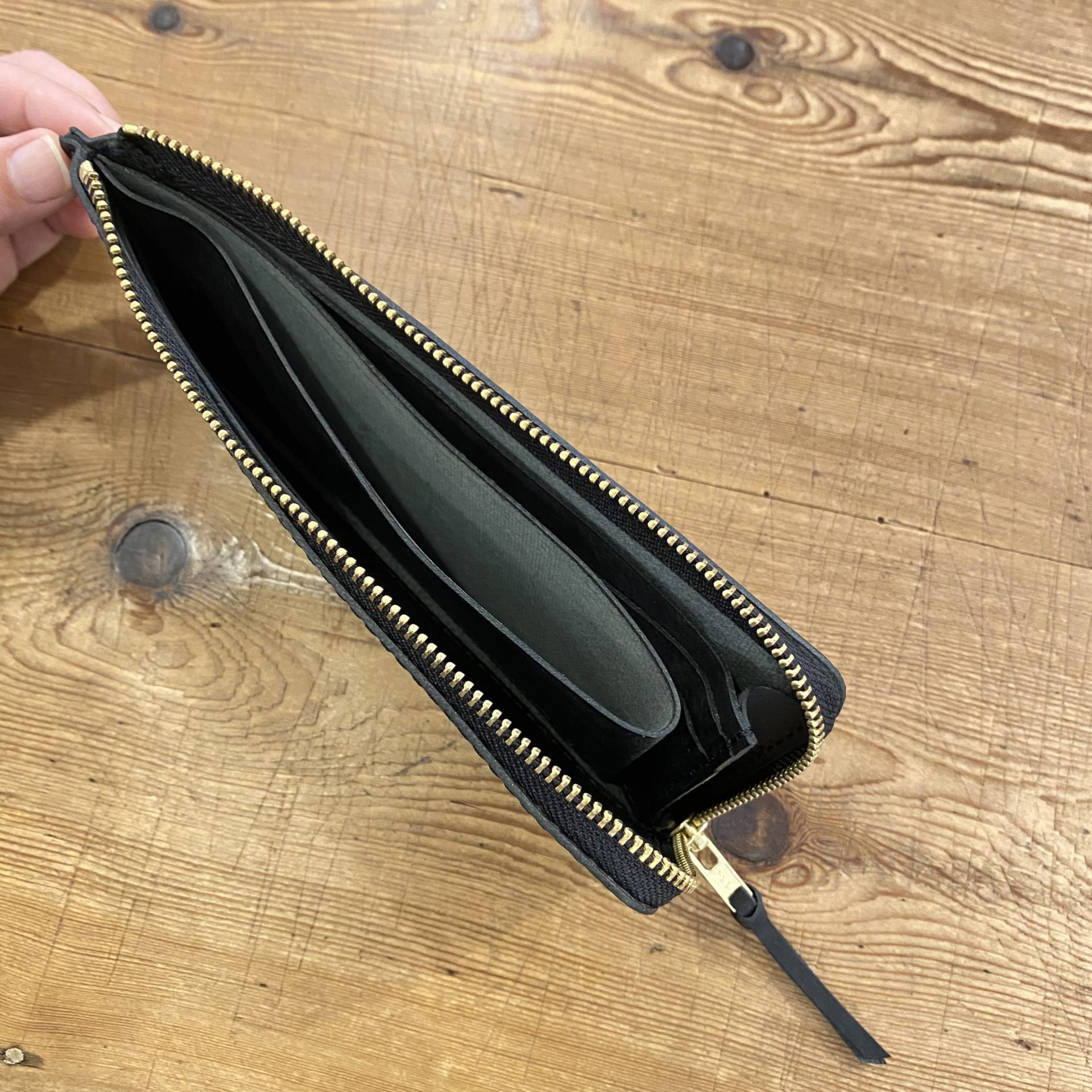 またその奥がフリーポケットになっていて、片方にはマチをつけて、お札などの出し入れがしやすくなっています。