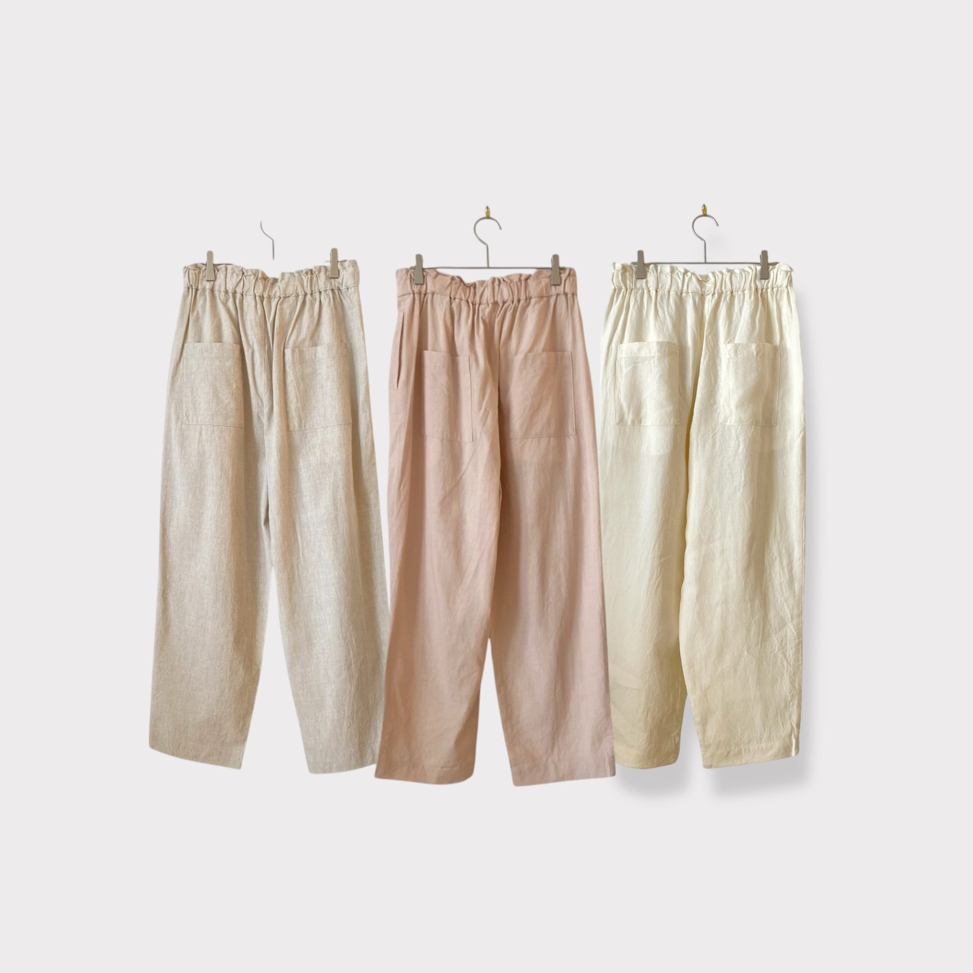 トリプルワッシャーリネンコットンタックイージーパンツ