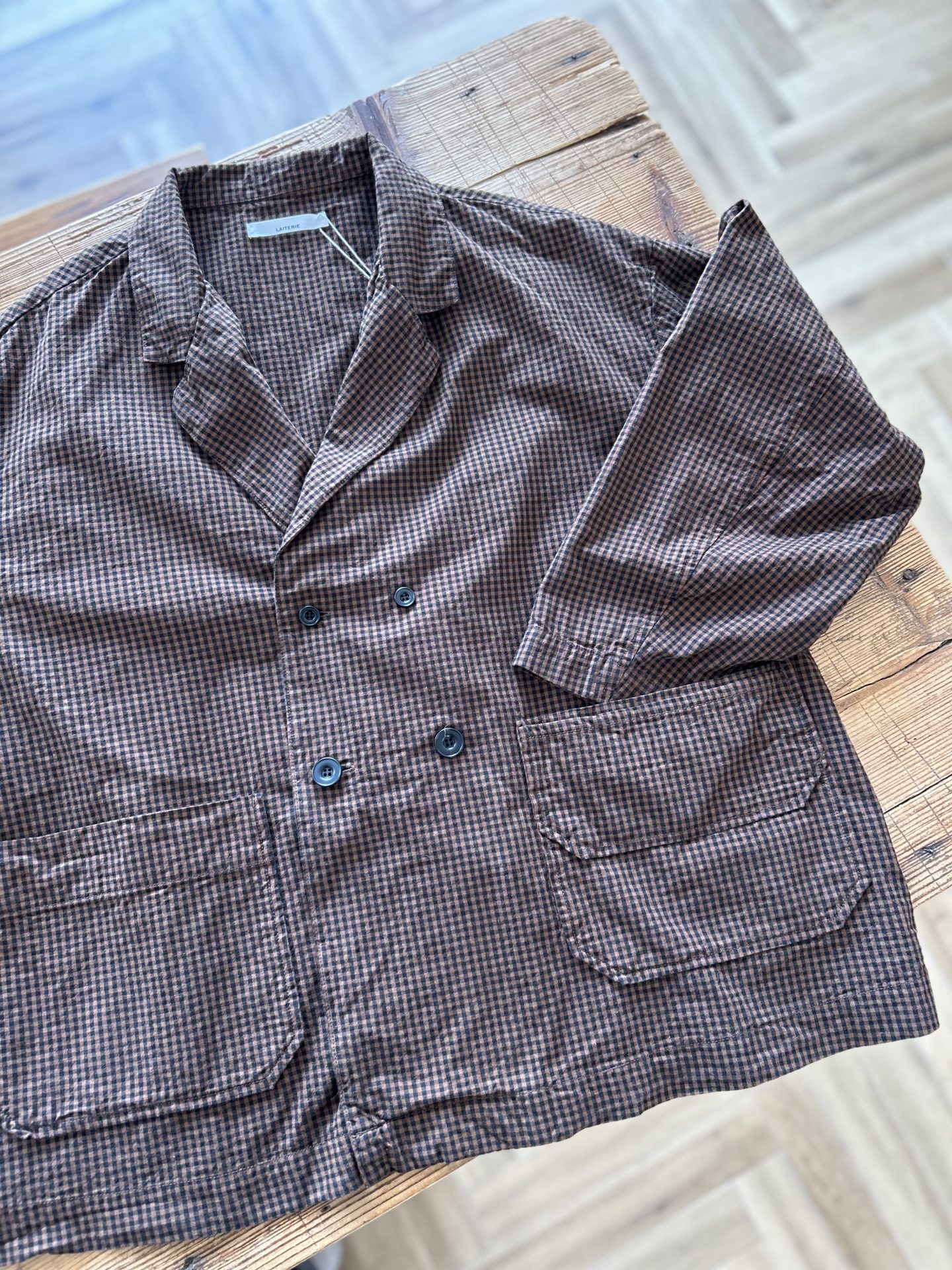Bico LAITERIE コットンリネンダブルジャケット BROWN系・NAVY系 程よいハリ感のダブルのジャケットです♪ 本体 綿84% リネン8% ラミー8% 別布 綿100% 25,080yen 2026-01-13 by chabbit LAITERIE < LAITERIE LAITERIE >