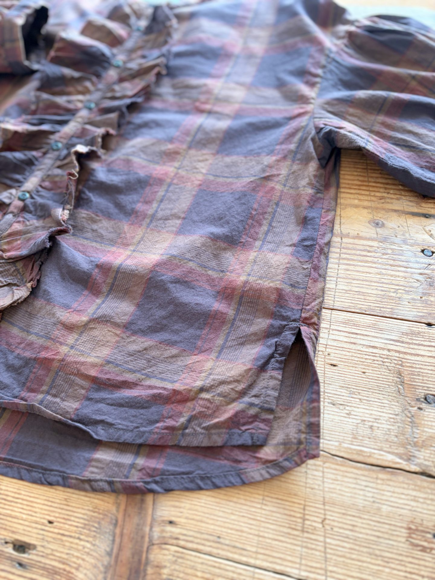 オーガニックコットンならではのやわらかな風合いのチェックフリルブラウスが入荷しました♪