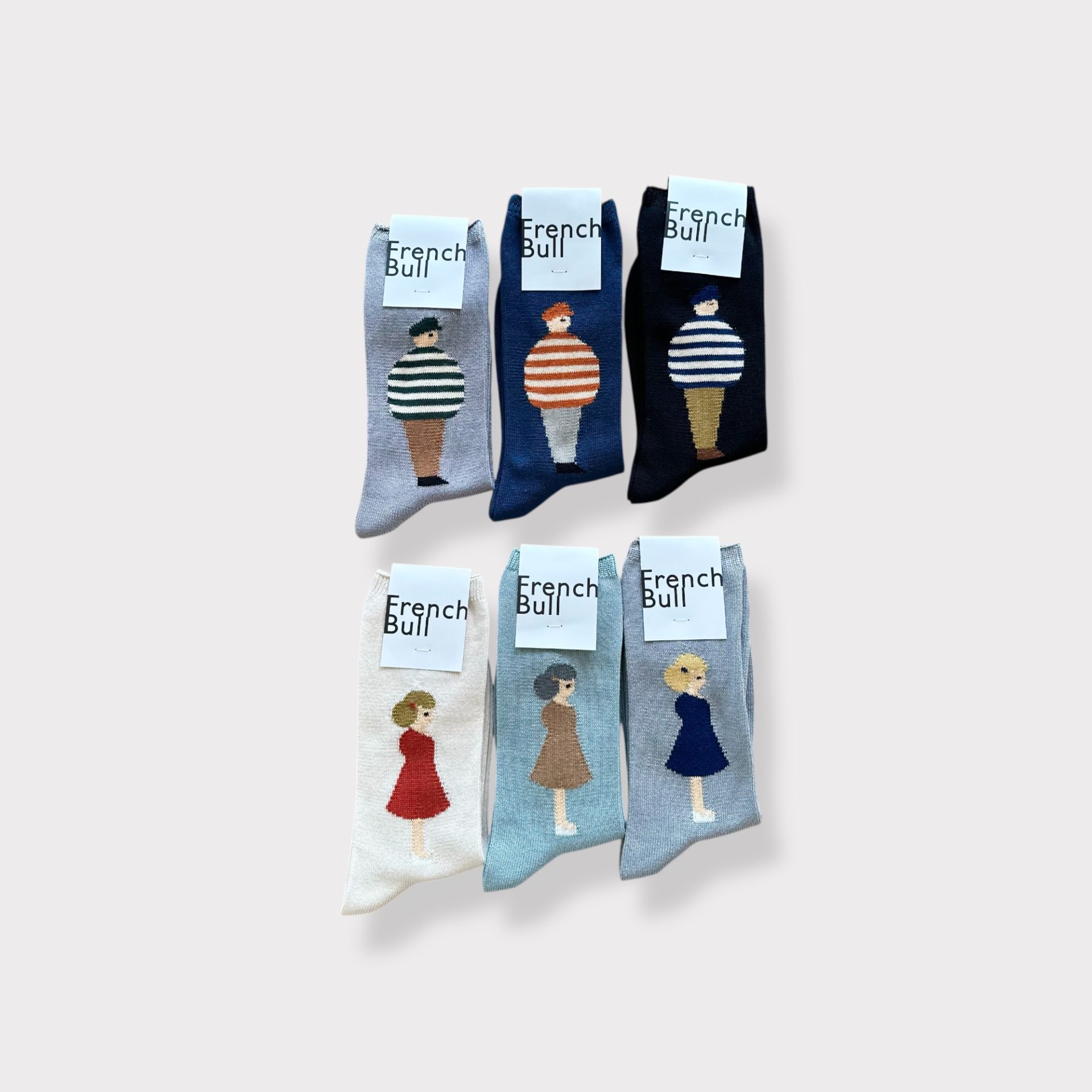 Bico French bull カップルソックス 男性と女性がモチーフの左右で柄の変わる楽しいソックスです♪ 2,200yen 2026-01-17 by chabbit French Bull < Utilite French bull >