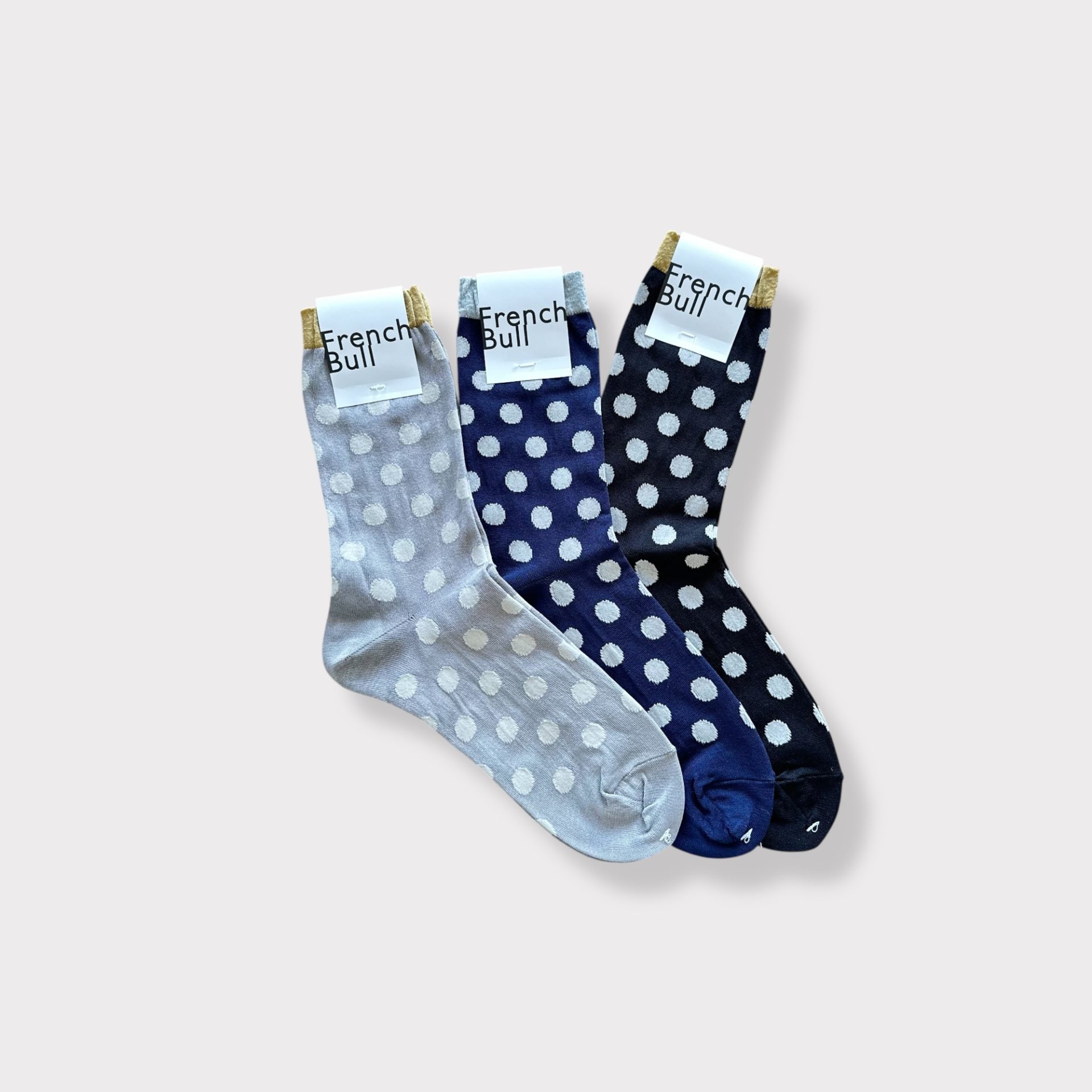 Bico French bull ボンボンショートソックス グレー・ネイビー・ブラック シンプルなドット柄のソックスです♪ TOPに施したゴールドやシルバーのラメポイントです☆ 1,650yen 2026-01-17 by chabbit French Bull < French bull