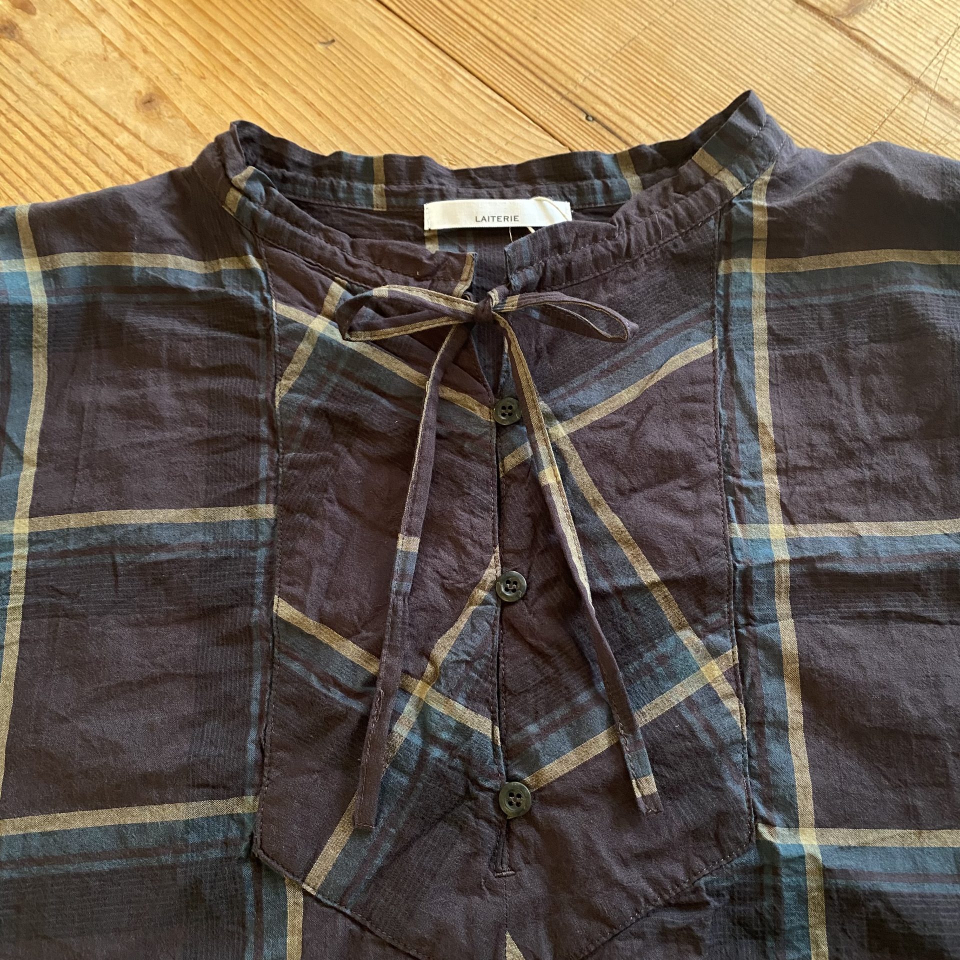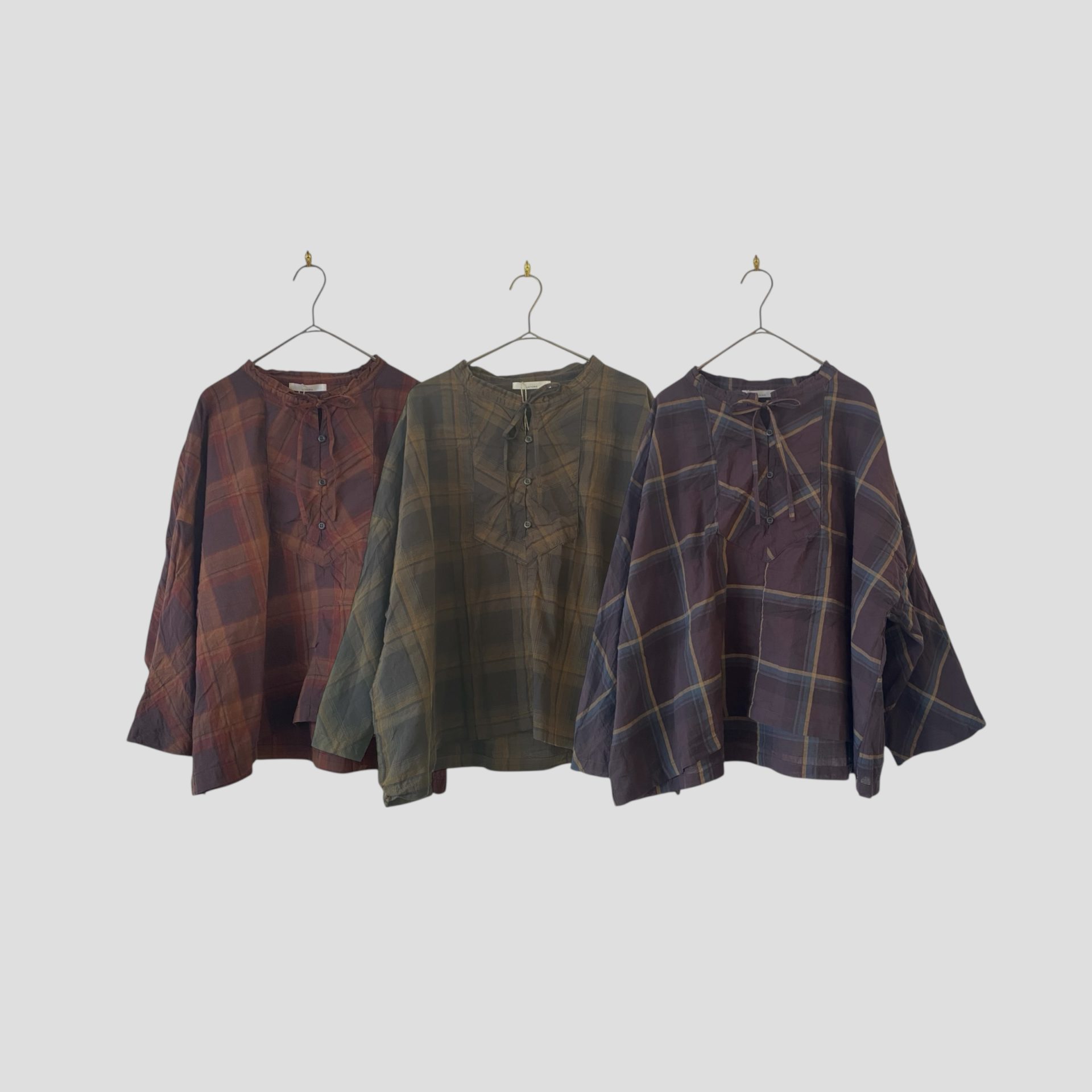 オーガニックコットンローンチェックリボンプルオーバー