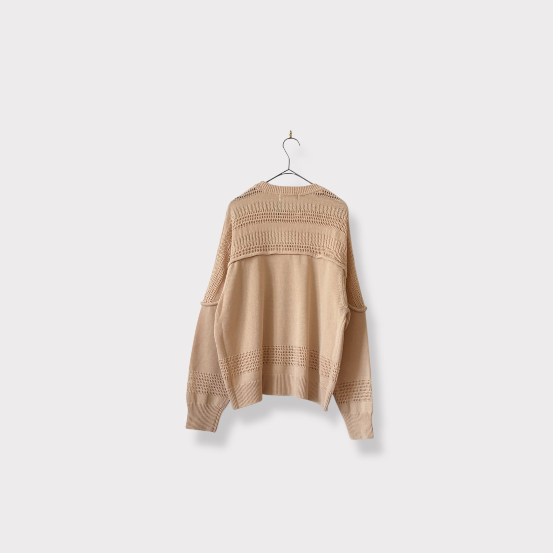ショルダーからスリーブにかけて施された透かし編みが程よい抜け感です☆