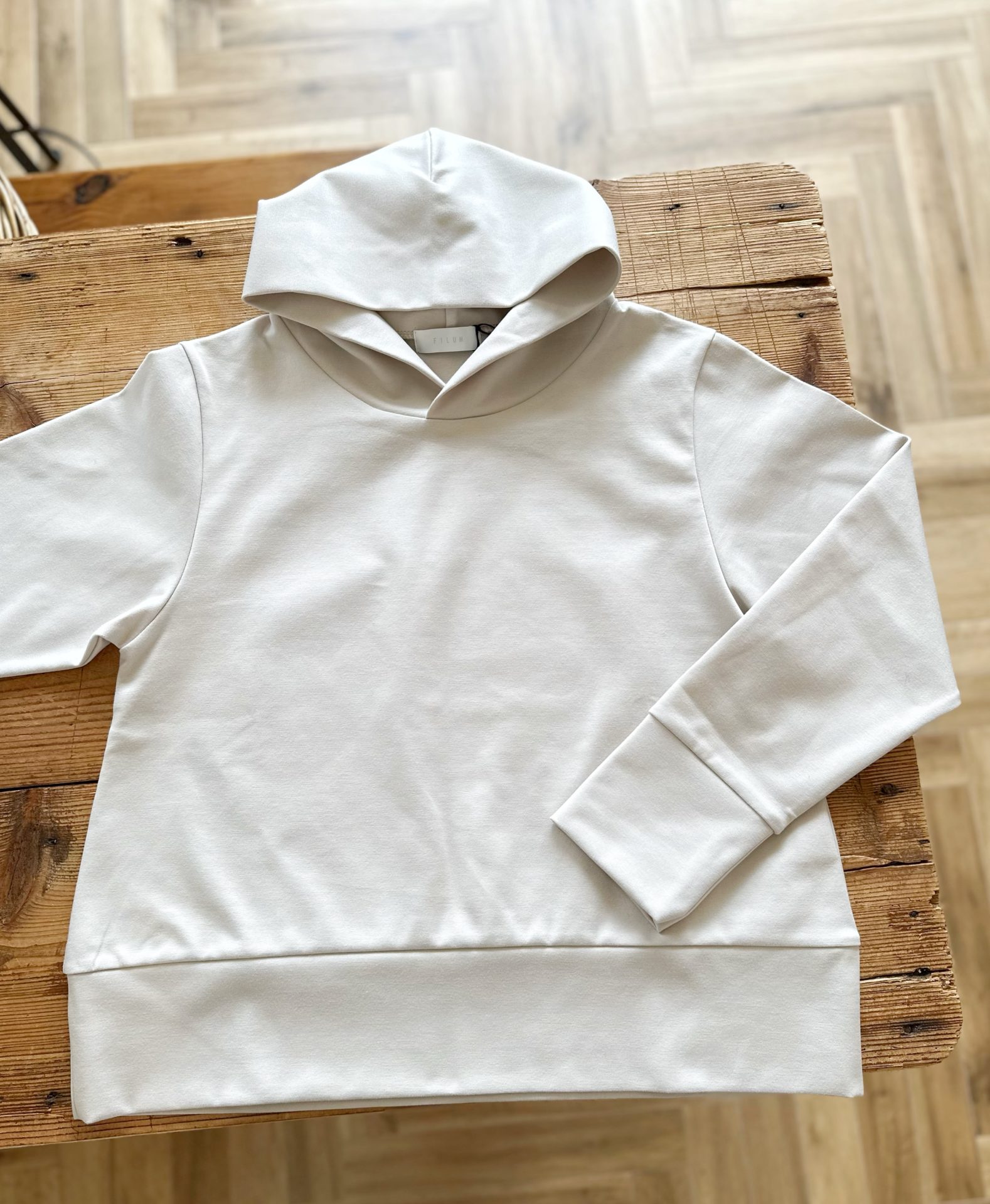 程よく厚みと張りのあるカットソー生地のパーカーです。