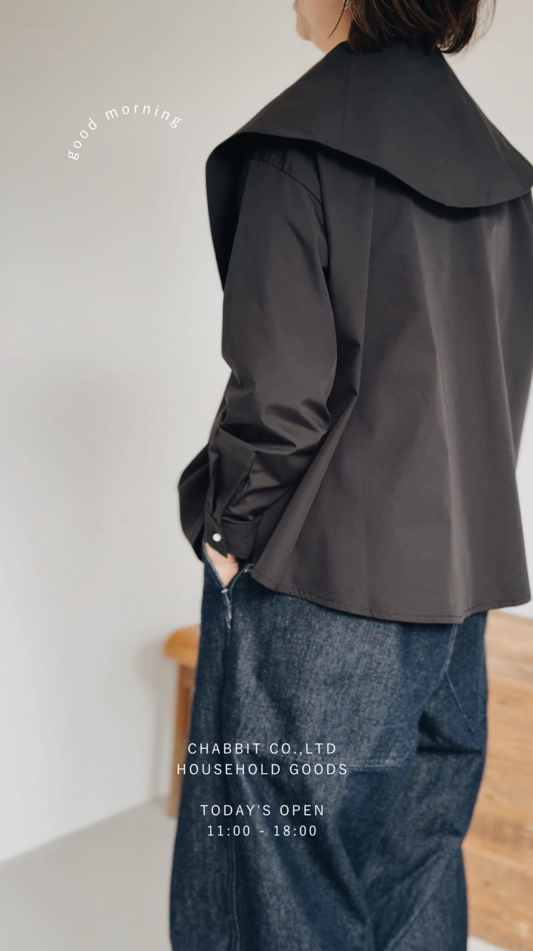 Bico ynir ケープカラーシャツ ハリと光沢感のある生地で大きな襟が特徴のシャツです♪ ポリエステル65% コットン35% 15400yen 2026-02-11 by chabbit ynir < OLDMAN’S TAILOR