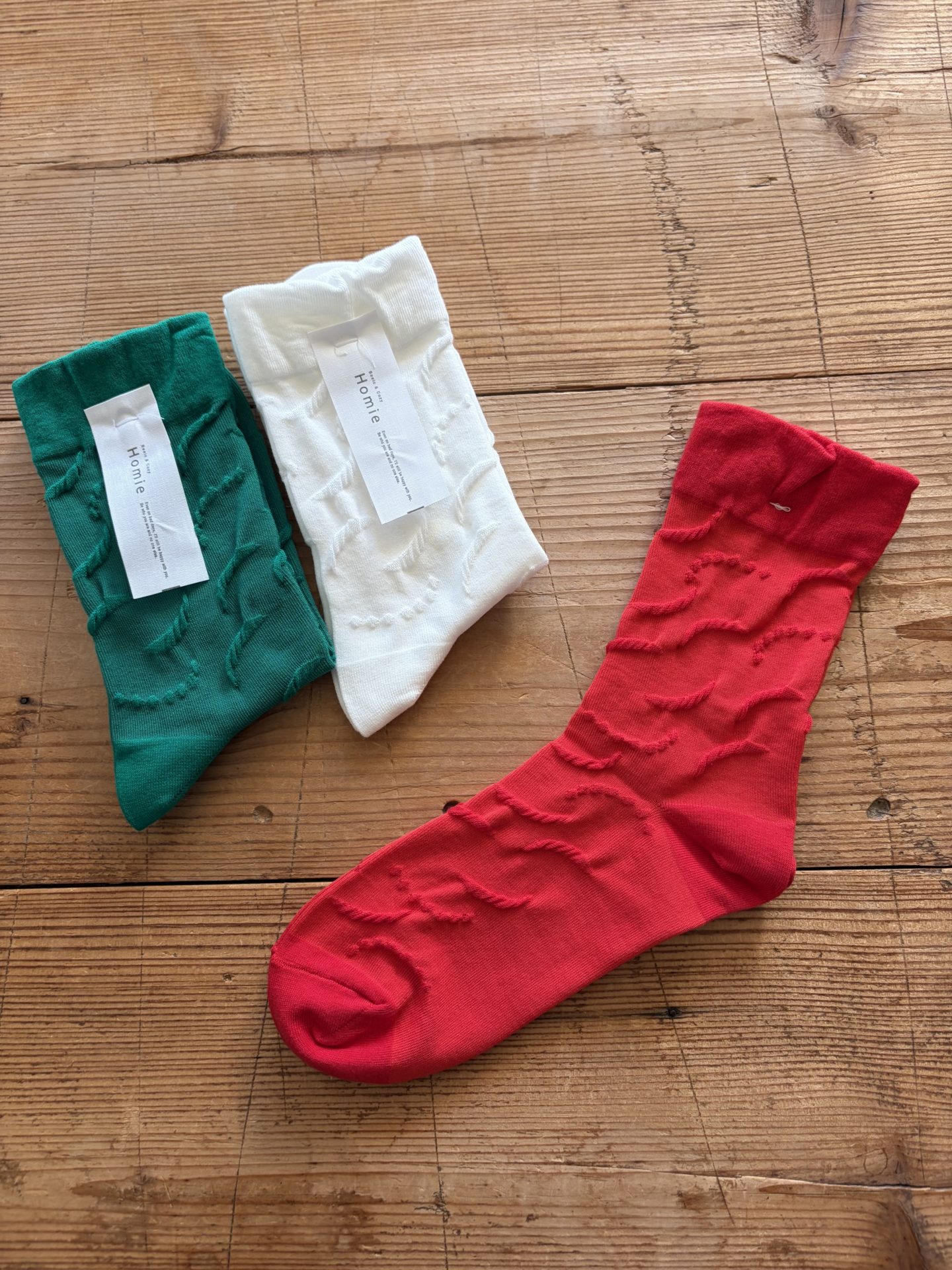 Bico Homie コットンバンピーソックス 表糸を部分的に飛ばし模様を浮かび上がらせる「フロート編み」と呼ばれる手法で柄を表現した靴下です♪ 素材には肌あたりの良い綿コーマ糸を使っています☆ 綿:67% , ポリエステル:32% , ポリウレタン:1% 1,430yen 2026-02-12 by chabbit Homie < Homie