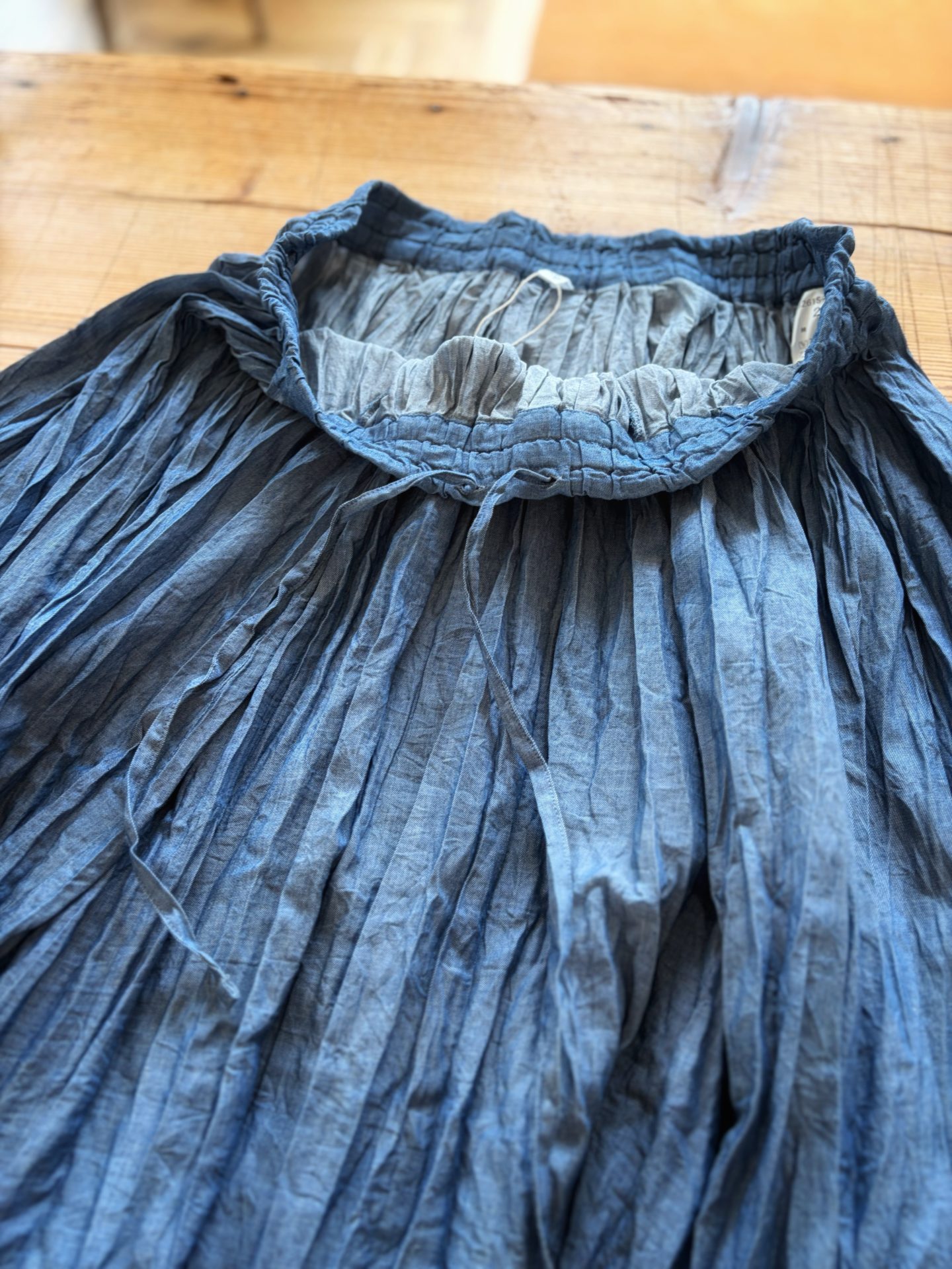 Bico grin デニムボイルスカート シワ加工のほどこされた 軽〜い生地感の ロングスカートです♪これからの季節に活躍間違いなしです! 着丈 約88cm cotton 100% 19,800yen 2026-03-09 by chabbit grin < euphoric ROBE de PEAU >