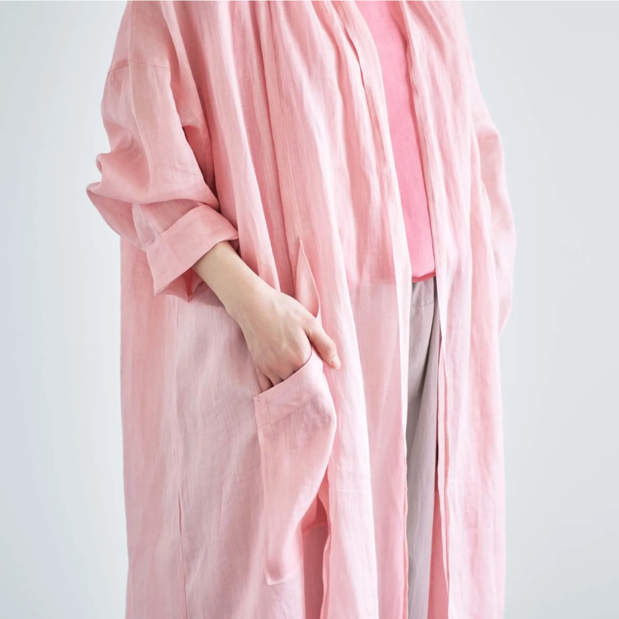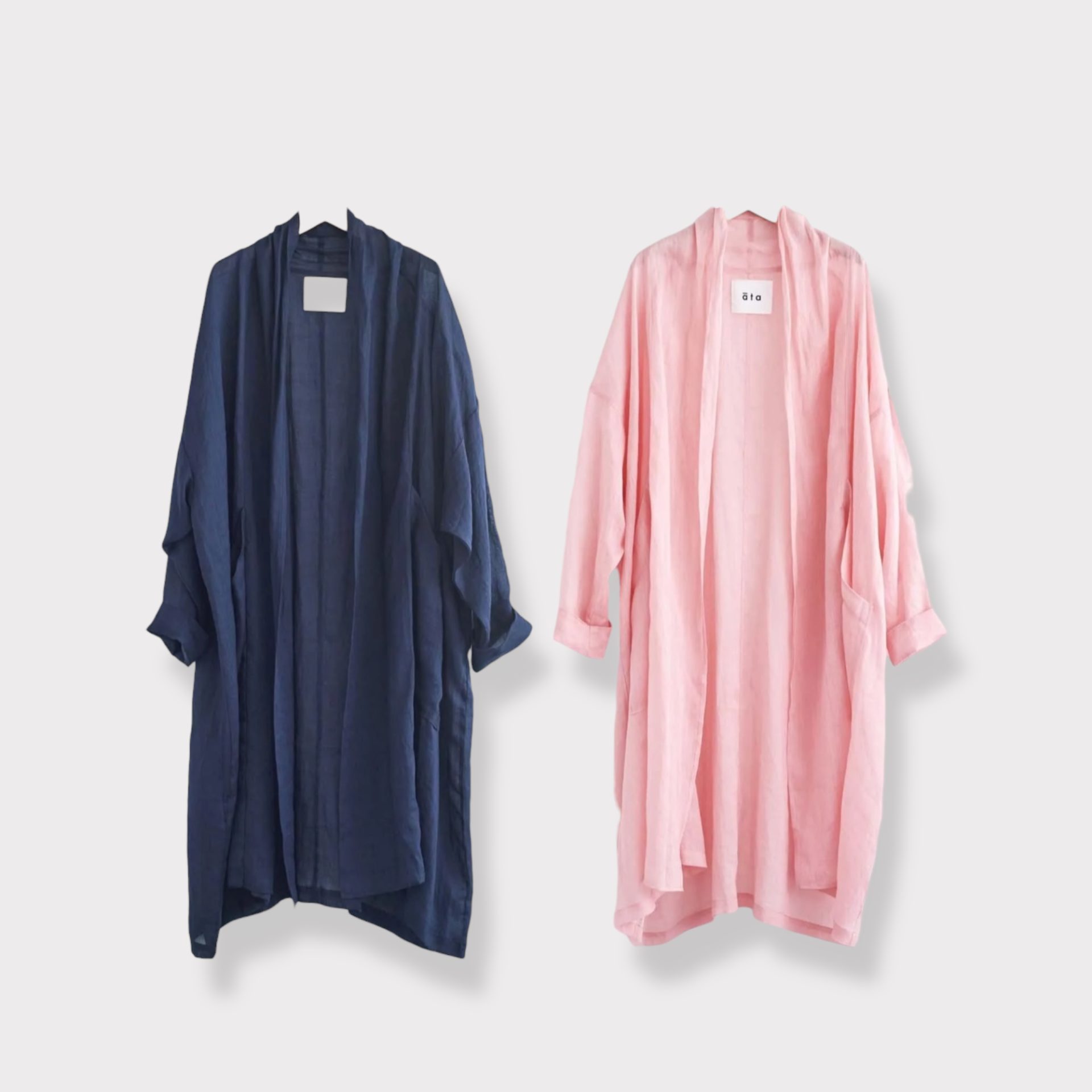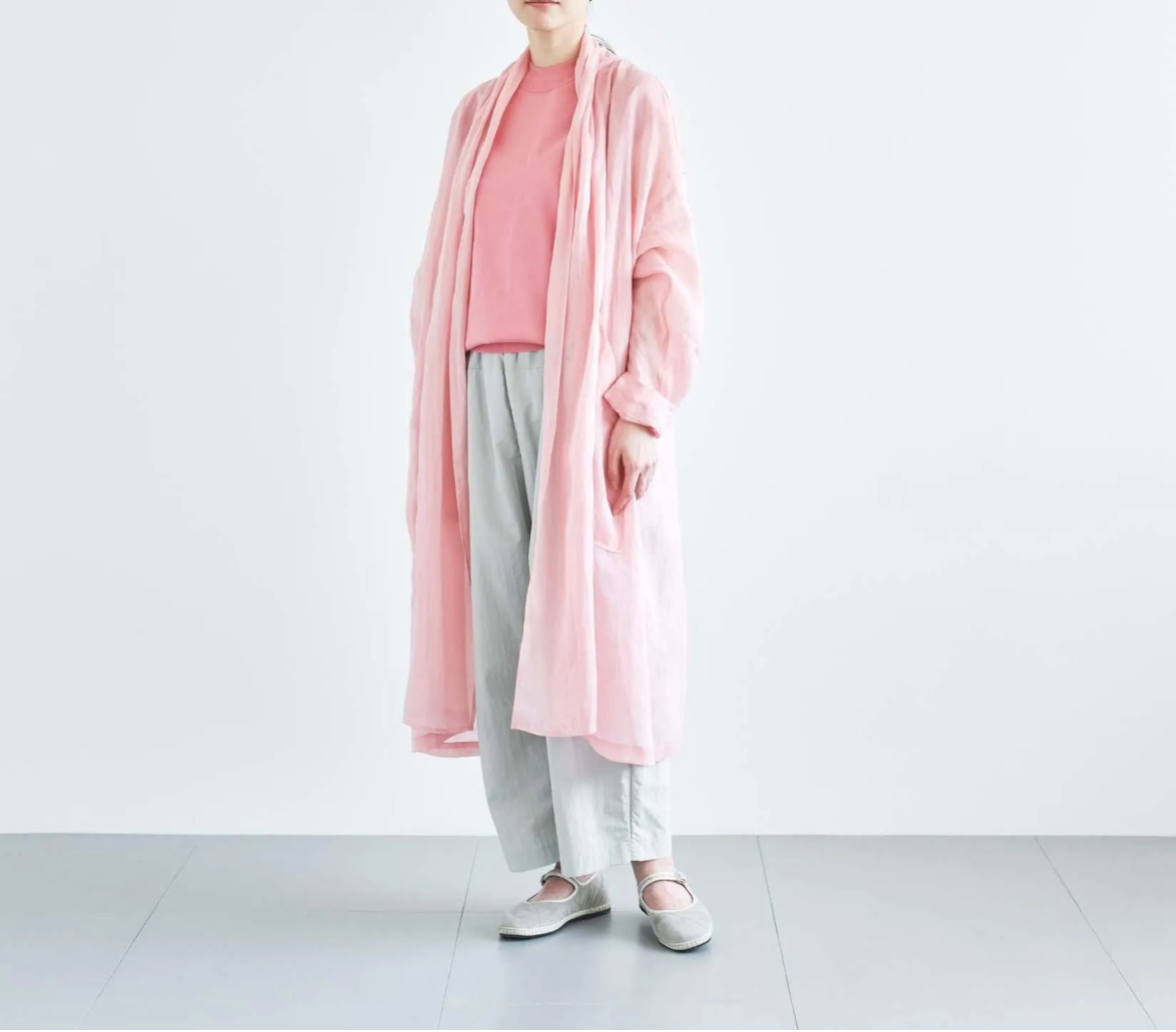 Bico ata ローブ ネイビー・ピンク ロングカーディガンのように、軽やかで上品なローブが入荷しました♪ さらりとした肌触りと適度な透け感が特徴の、薄手のラミー生地を使用しています☆ ラミー 100% 着丈105cm 19,800yen いつものパンツスタイルにサッと羽織るだけで新鮮な着こなしが楽しめる、体温調節にも便利な一枚です♪ フロントの大きなパッチポケットもポイントです♪ 2026-03-18 by chabbit ata claska < ata HAU >