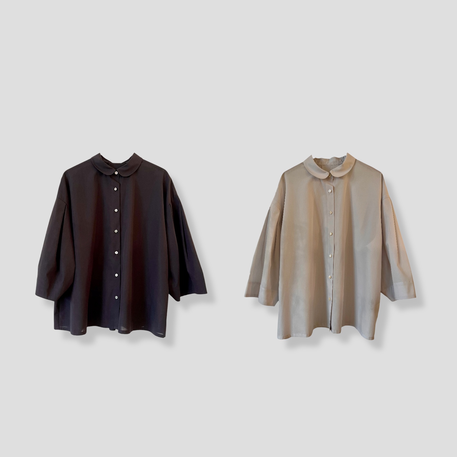 Bico STAMP and DIARY 丸襟ブラウス ボリュームのある袖と背中のタックで立体的で落ち感のあるシルエットが特徴です。 綺麗めでサラッと着れる1枚ですよ! 綿 100% コン、 ライトグレー 22,000yen 2026-03-25 by chabbit STAMP AND DIARY < Chausse STAMP and DIARY >