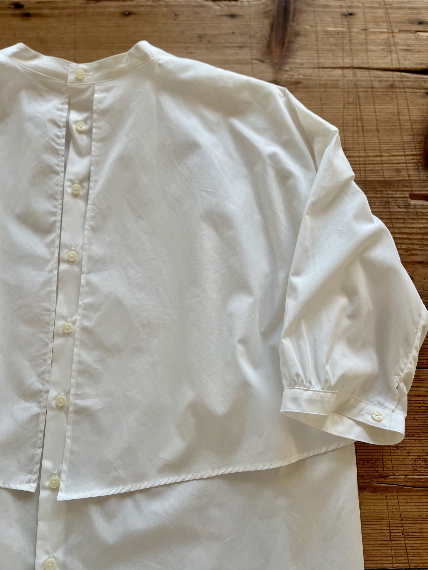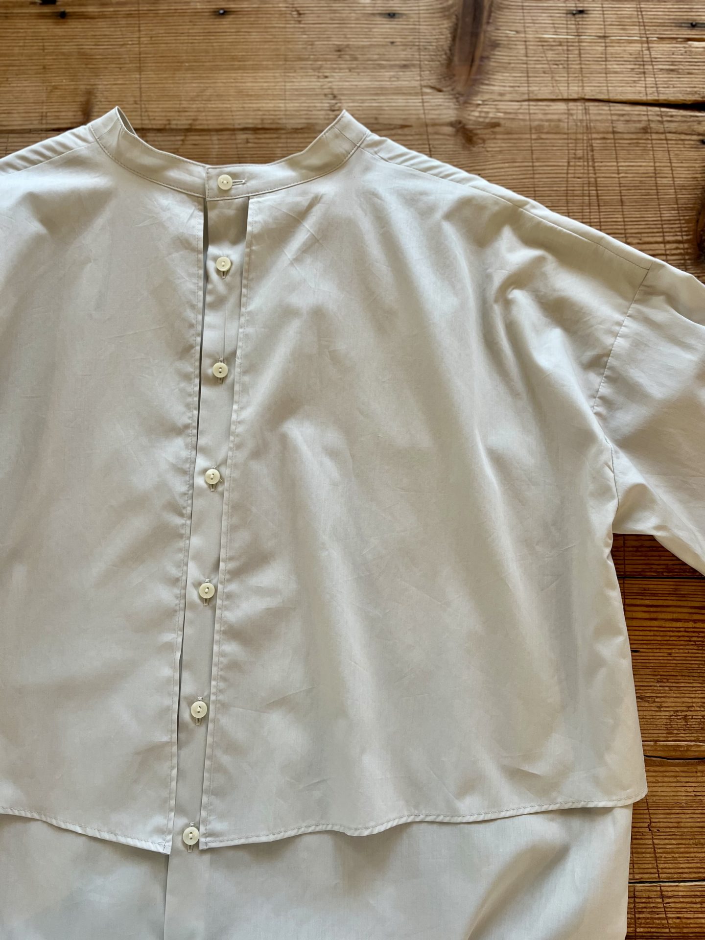 重ね着しているような立体的なシルエットが、軽やかな着心地と奥行きのある表情を生み出します。