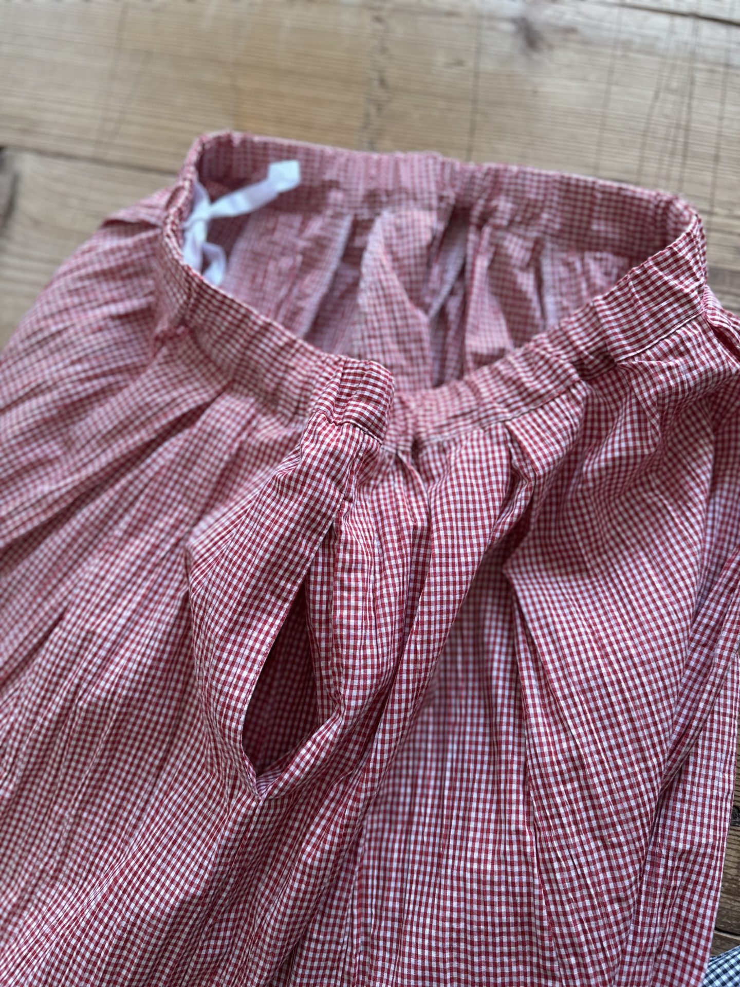 ウエストは総ゴム仕様で、内側の紐でサイズ調節も可能です♪