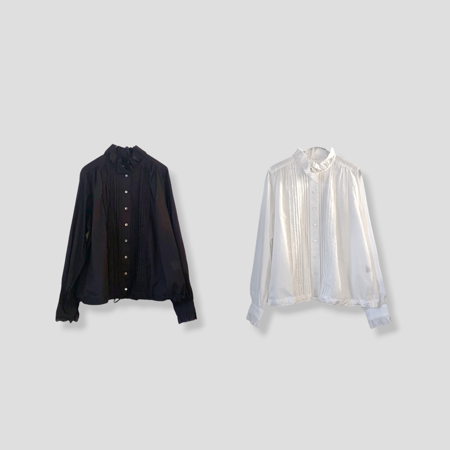 身頃はコットンピンタックで襟と袖口は同じ素材の可愛いフリルになっています。