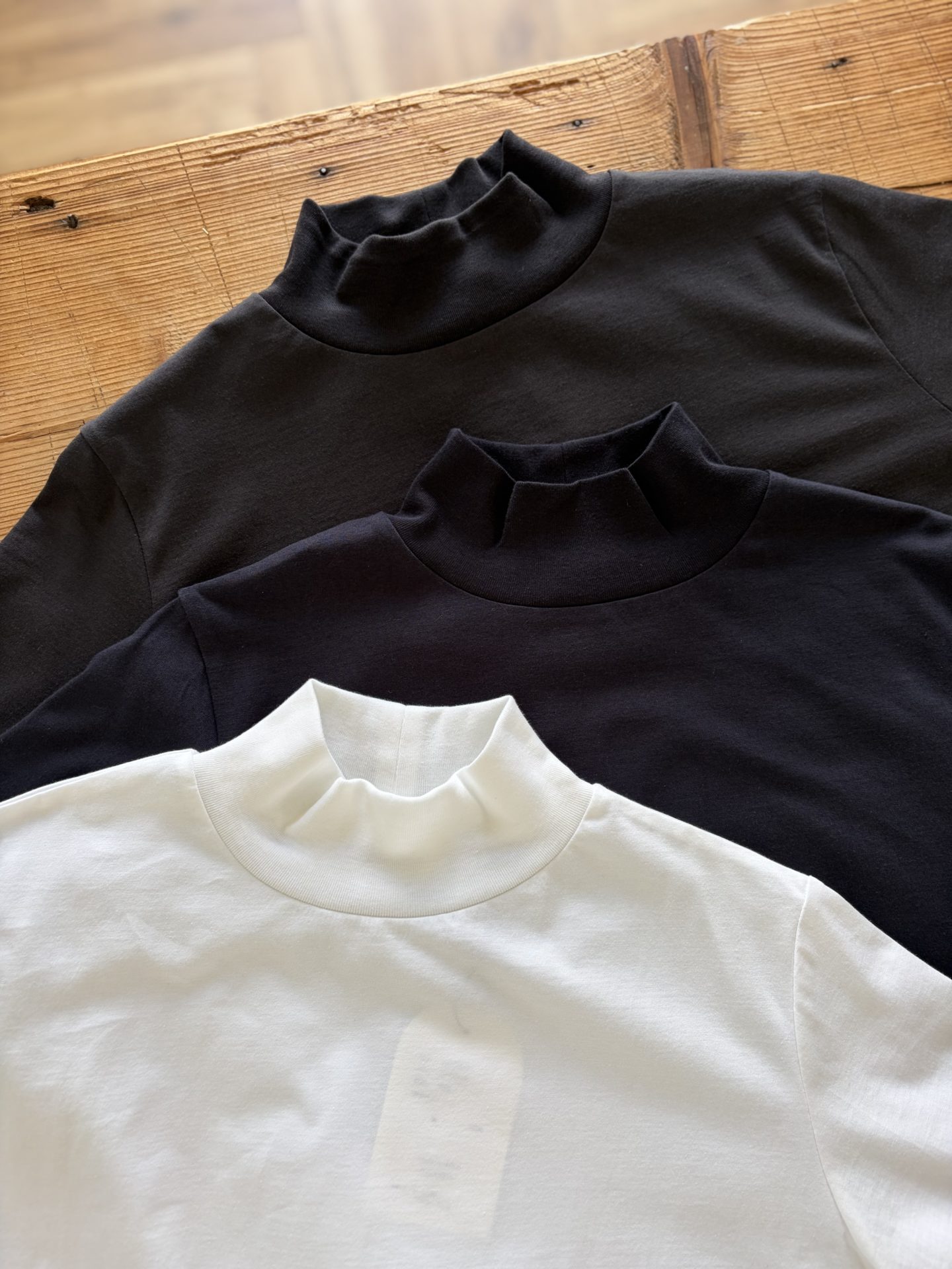 希少価値の高いスペインピマコットン100%の素材で仕立てたモックネックトップスが入荷しました♪