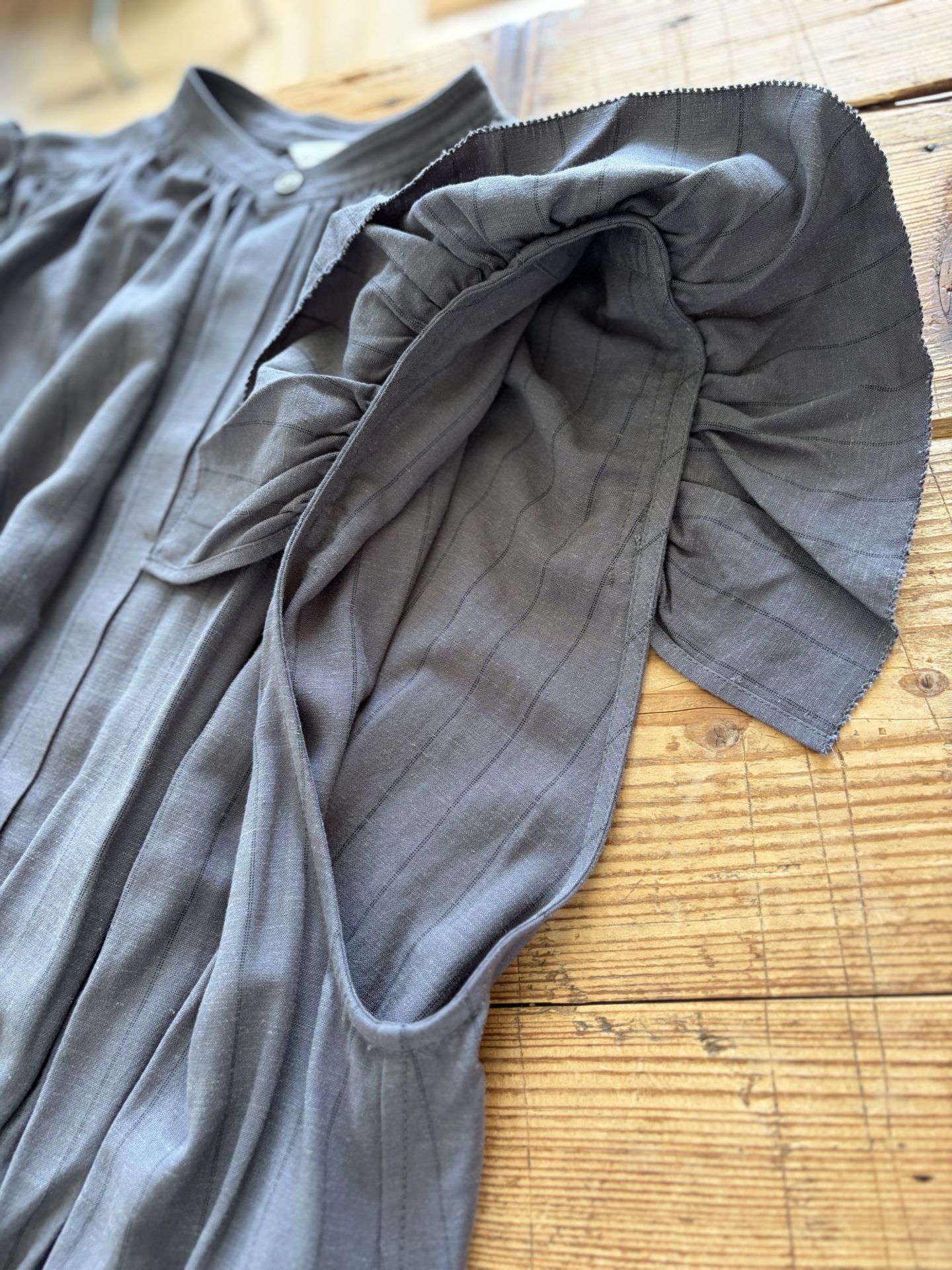 首元はスッキリとしたバンドカラー、フロントは比翼仕立てでモード感もあります♪